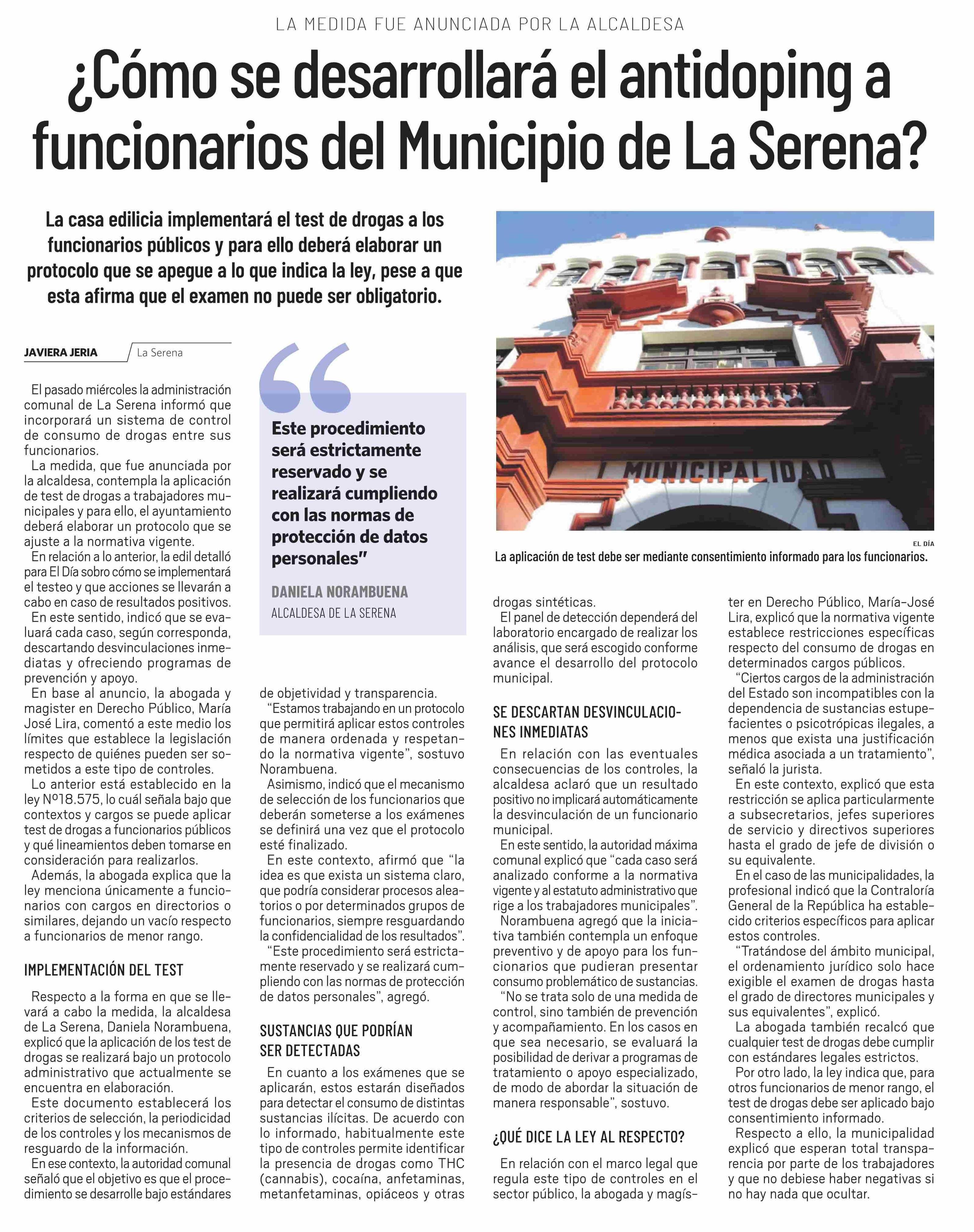 ¿Cómo se desarrollará el antidoping a funcionarios del Municipio de La Serena?