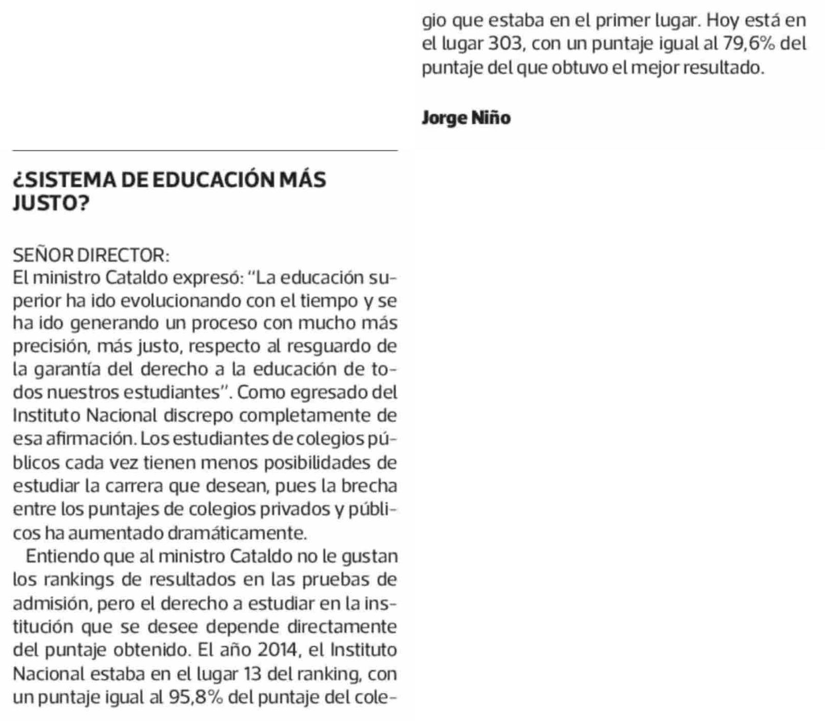 Cartas: ¿SISTEMA DE EDUCACIÓN MÁS JUSTO?