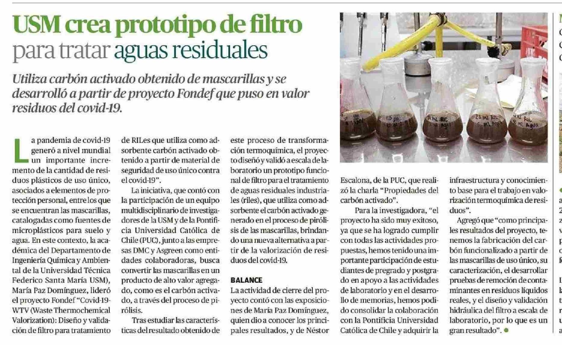 USM crea prototipo de filtro para tratar aguas residuales