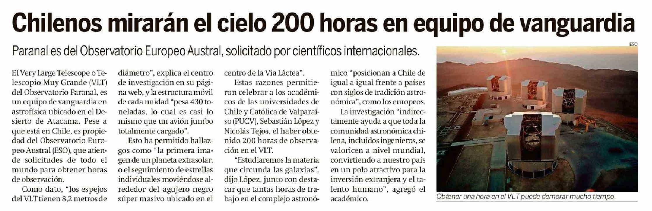 Chilenos mirarán el cielo 200 horas en equipo de vanguardia