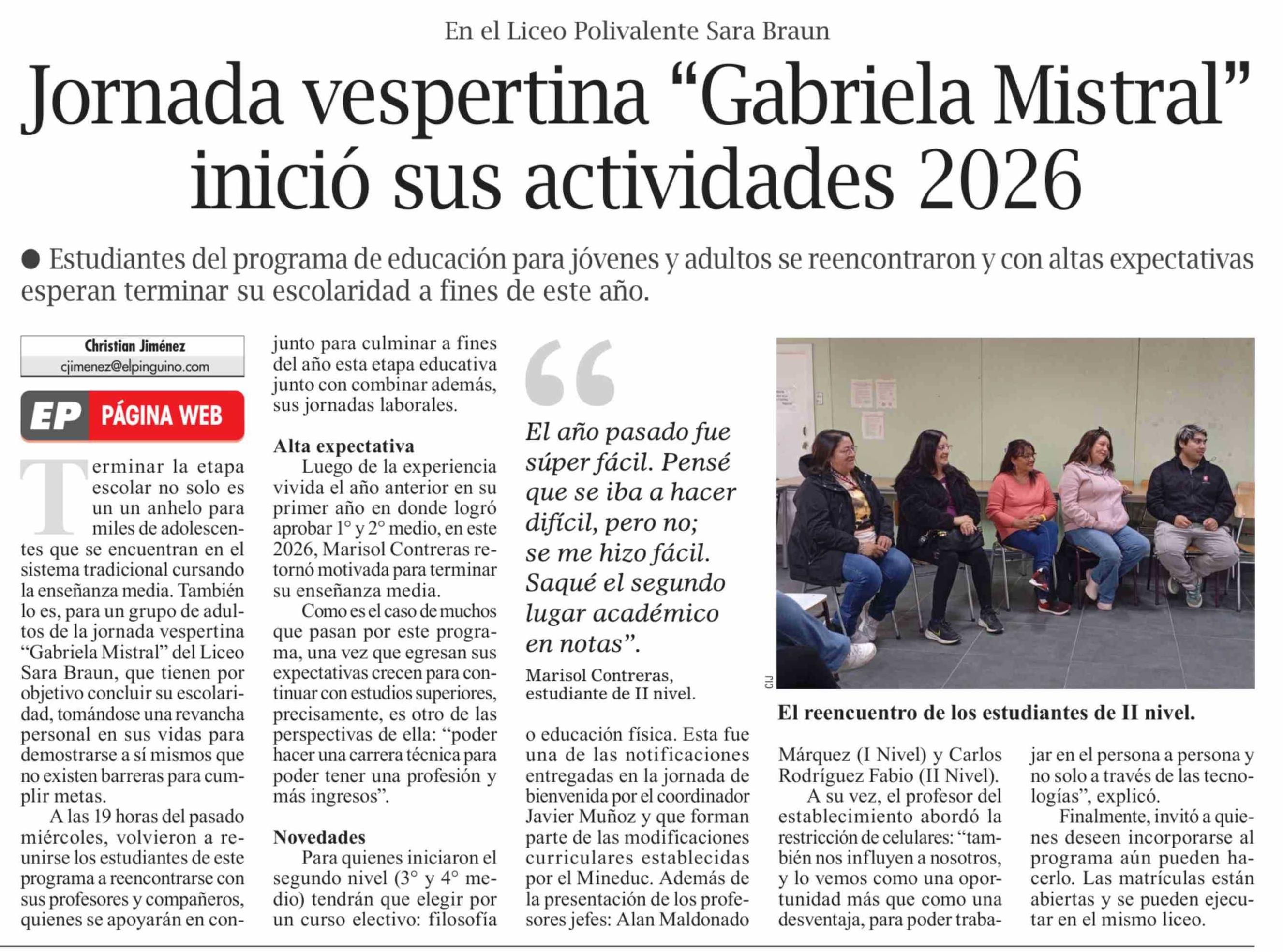 Jornada vespertina "Gabriela Mistral" inició sus actividades 2026