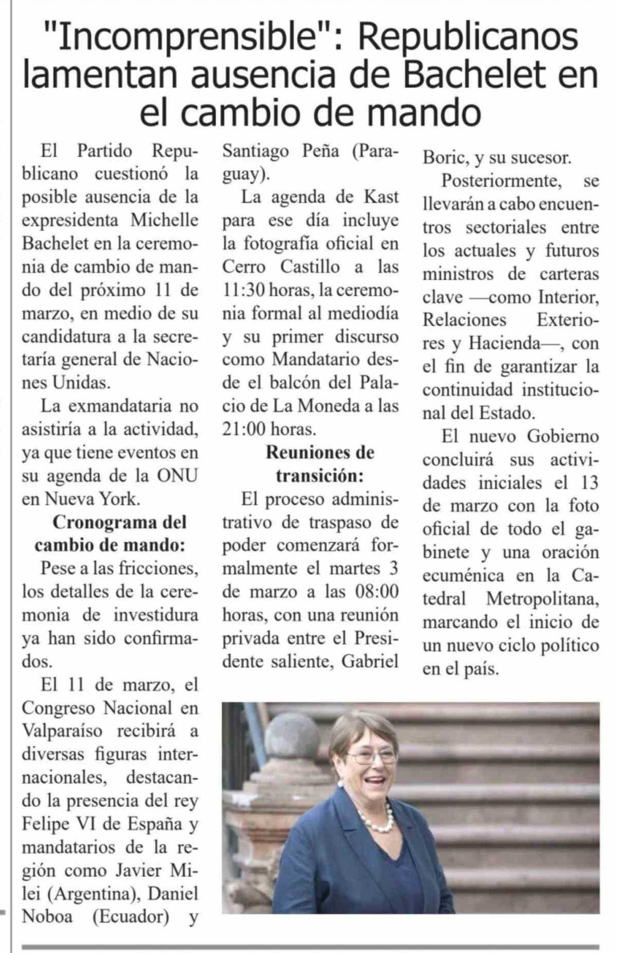 "Incomprensible": Republicanos lamentan ausencia de Bachelet en el cambio de mando
