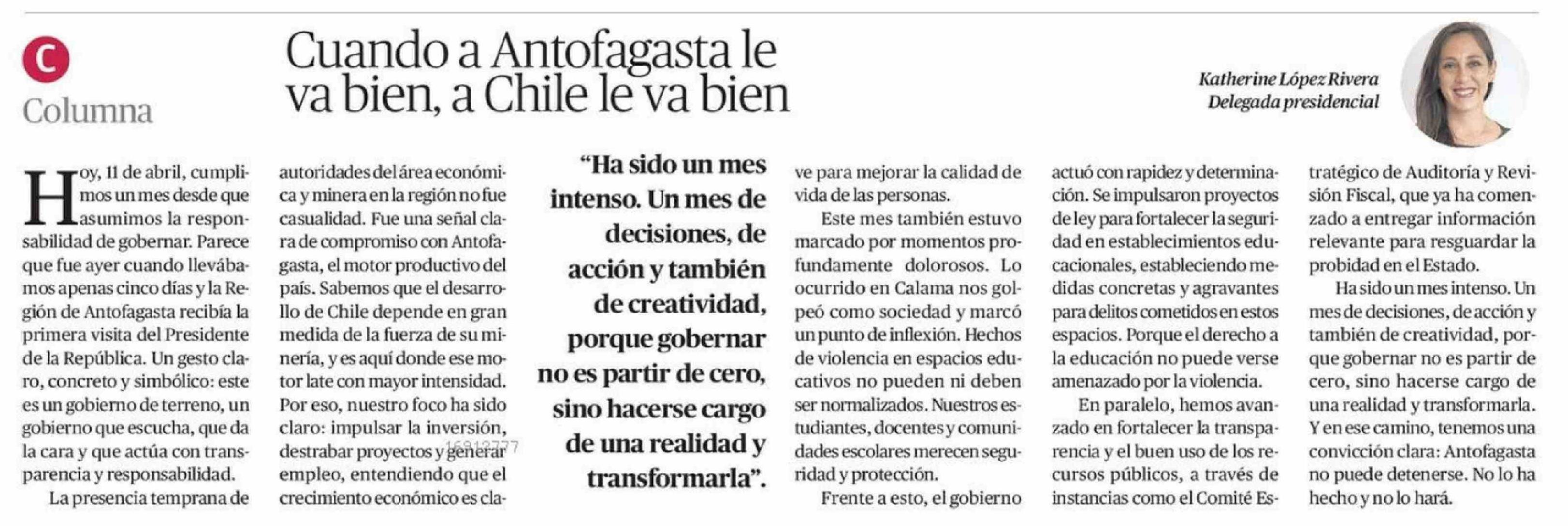 Columnas de Opinión: Cuando a Antofagasta le va bien, a Chile le va bien