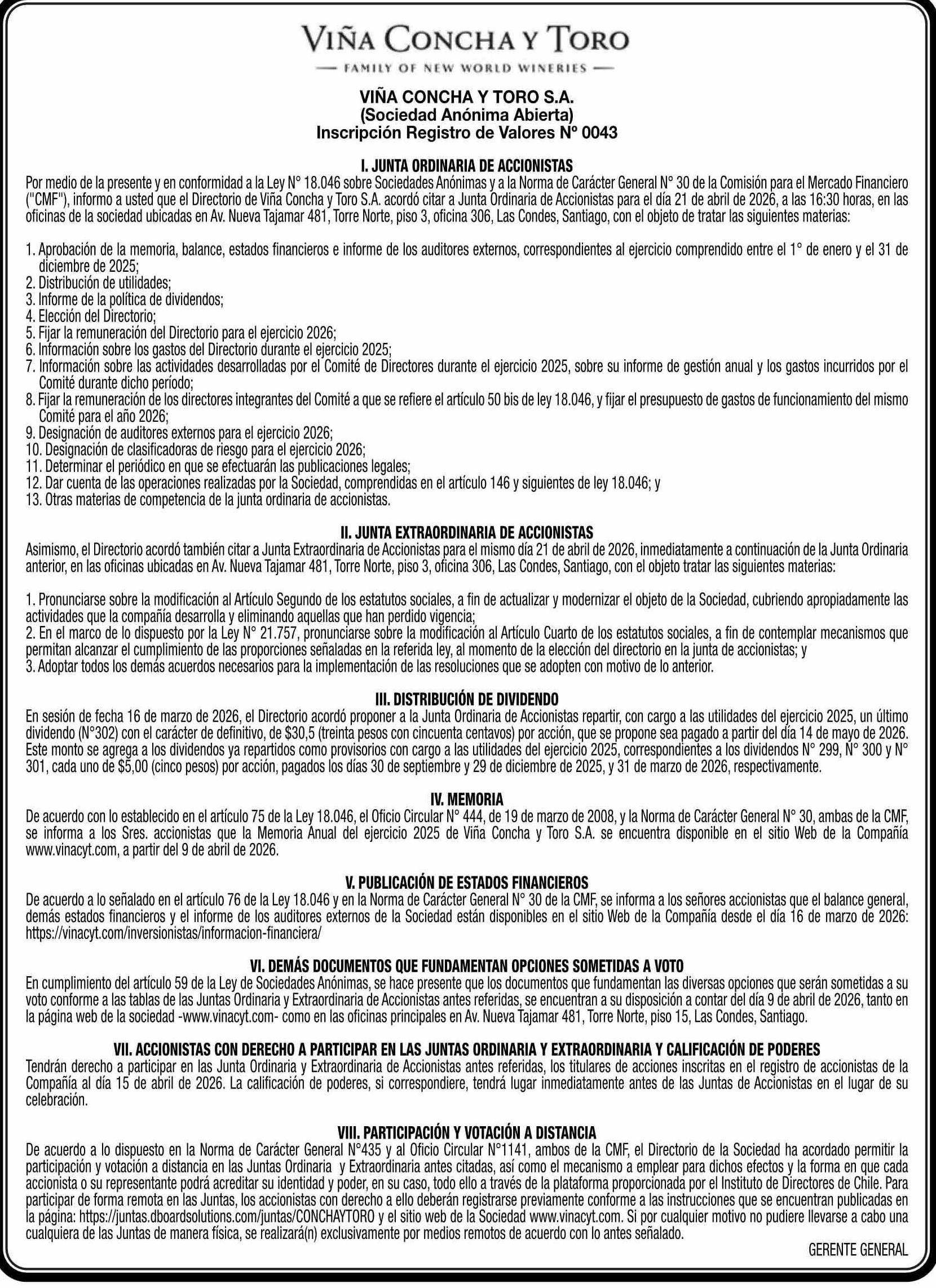 Título: Extractos: VIÑA CONCHA Y TORO S.A.