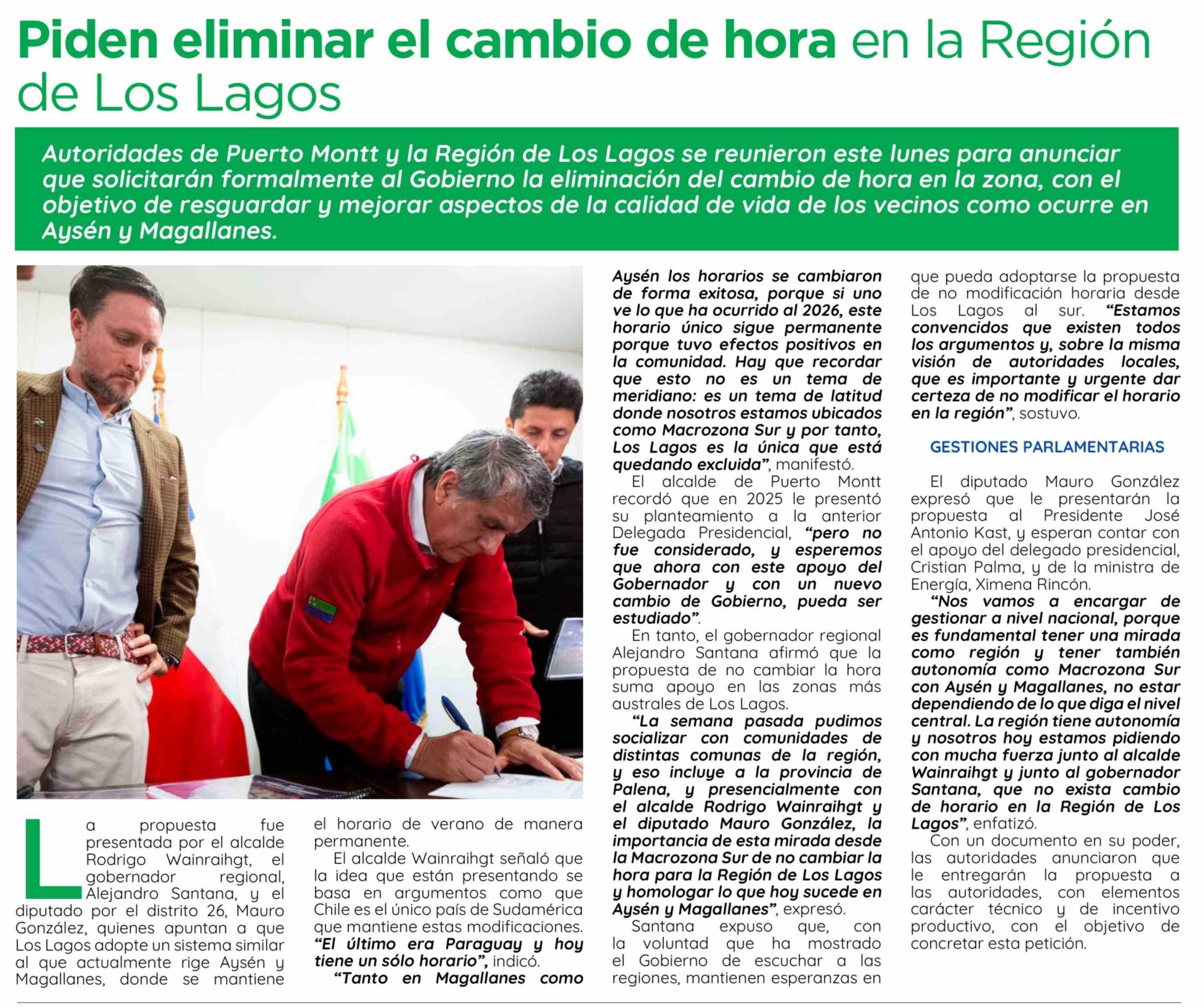 Piden eliminar el cambio de hora en la Región de Los Lagos
