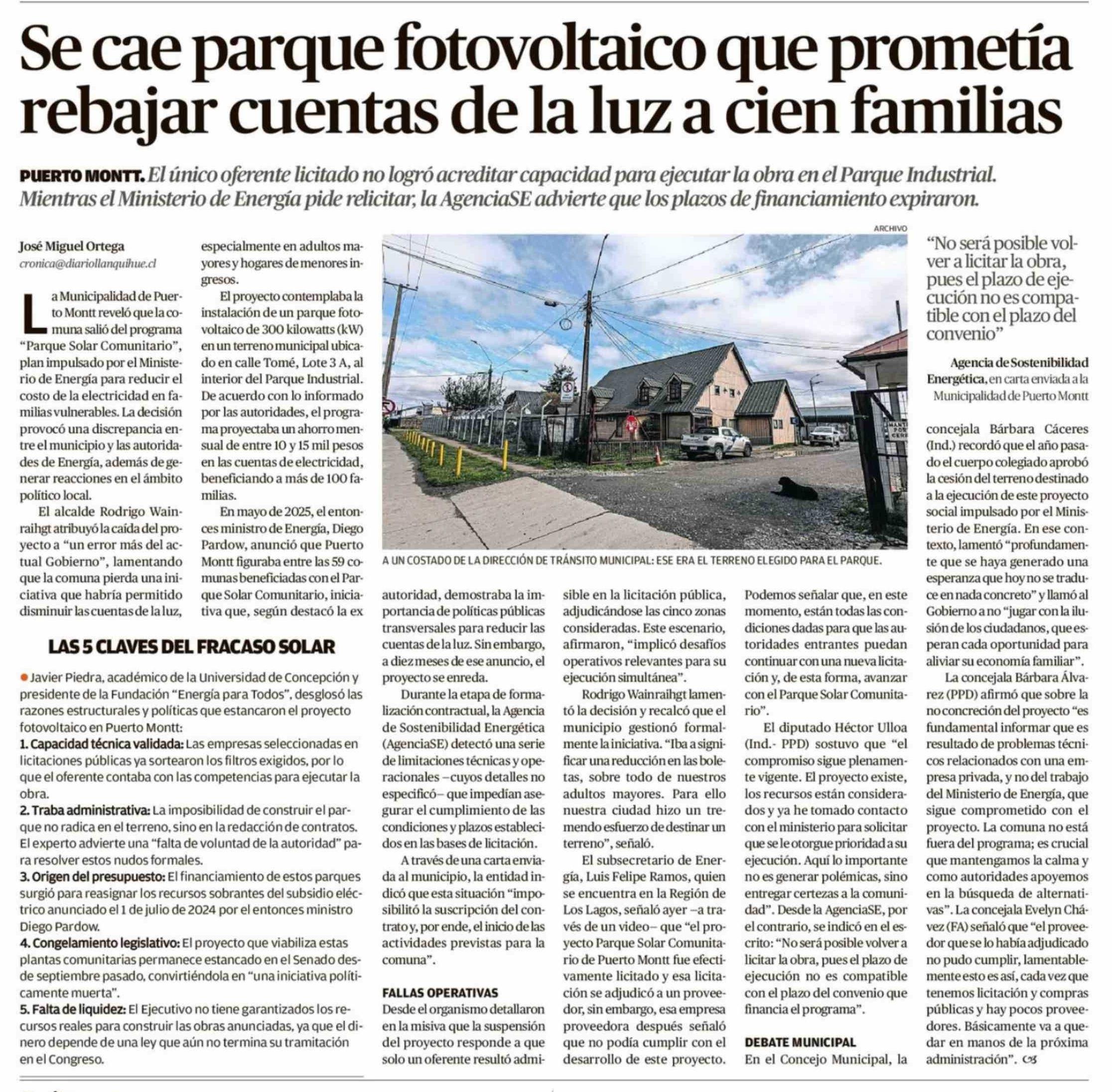 Se cae parque fotovoltaico que prometía rebajar cuentas de la luz a cien familias