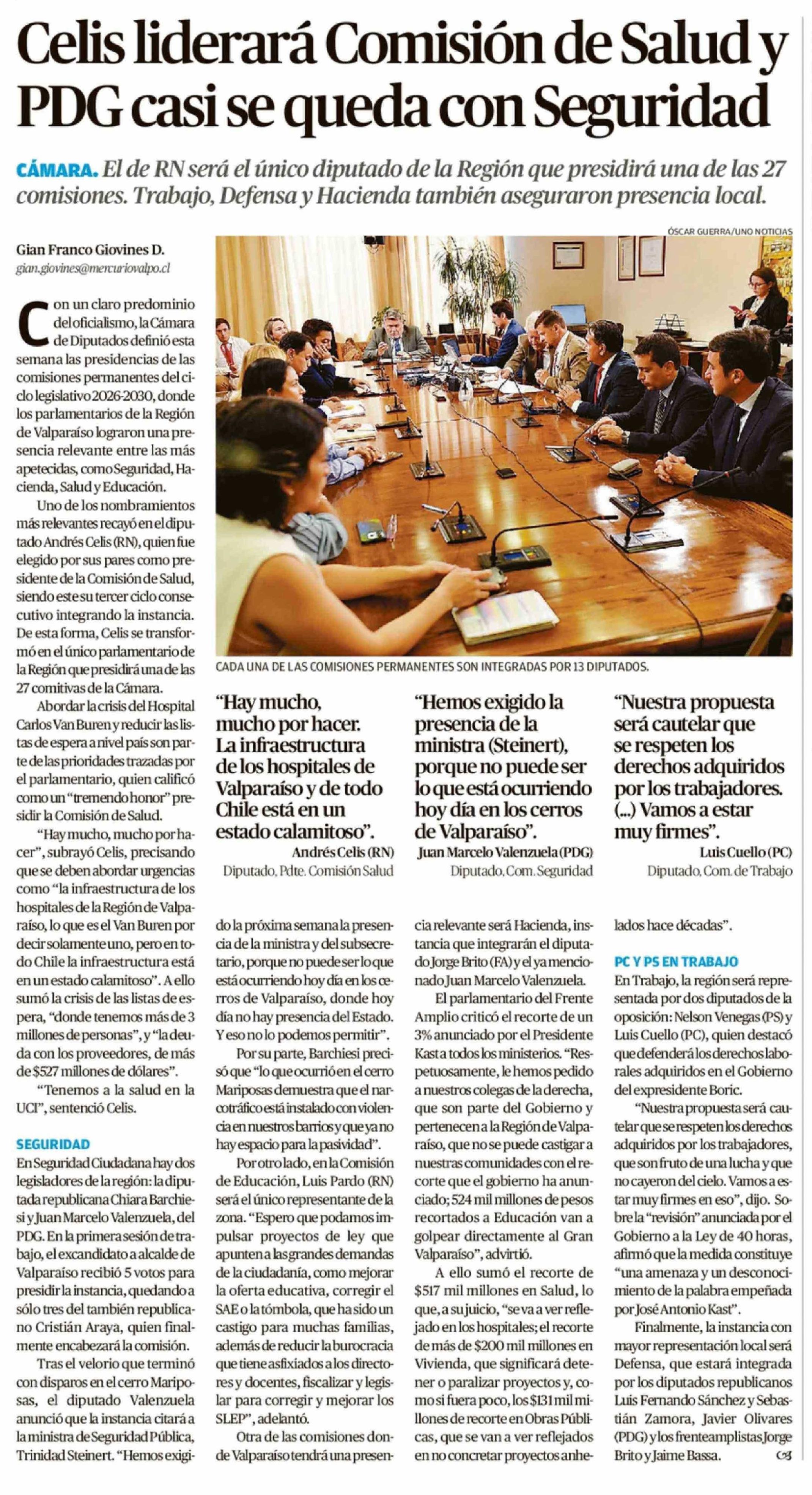 Título: Celis liderará Comisión de Salud y PDG casi se queda con Seguridad
