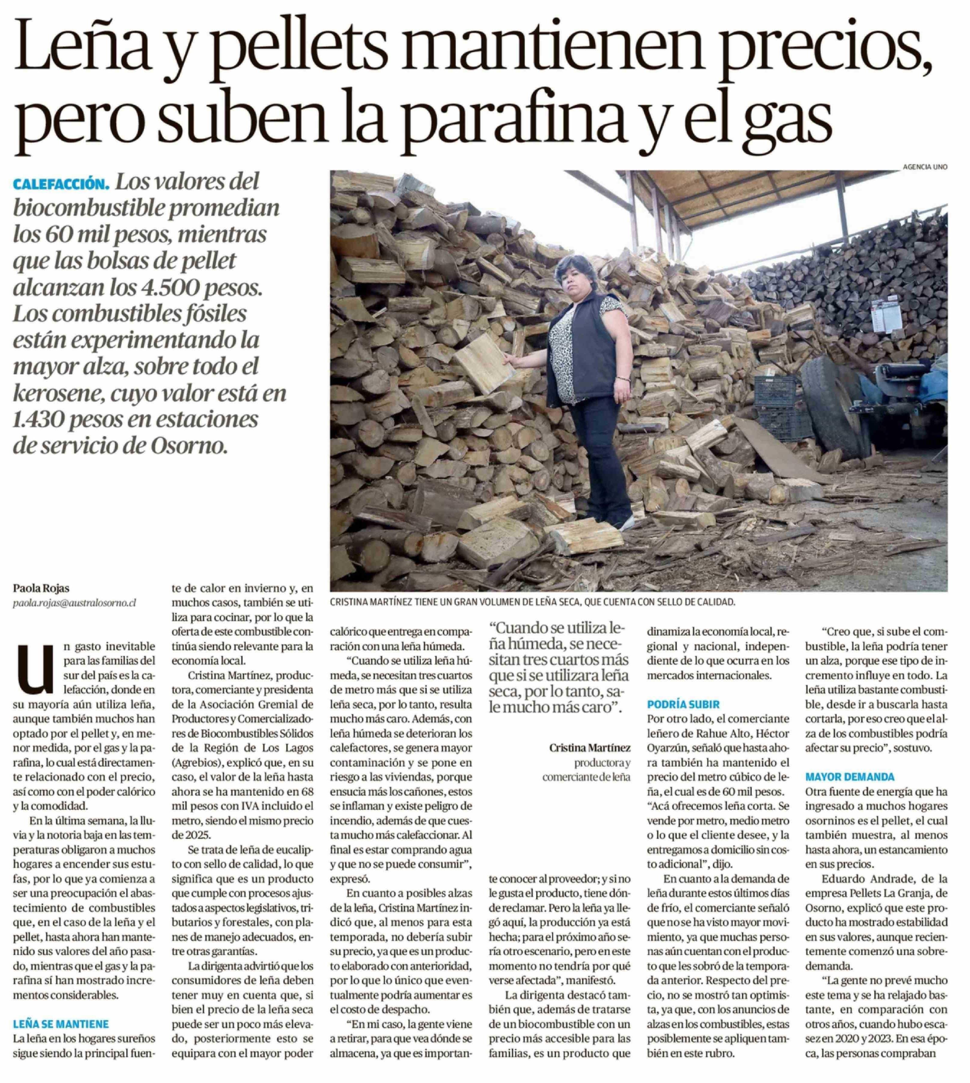 Leña y pellets mantienen precios, pero suben la parafina y el gas