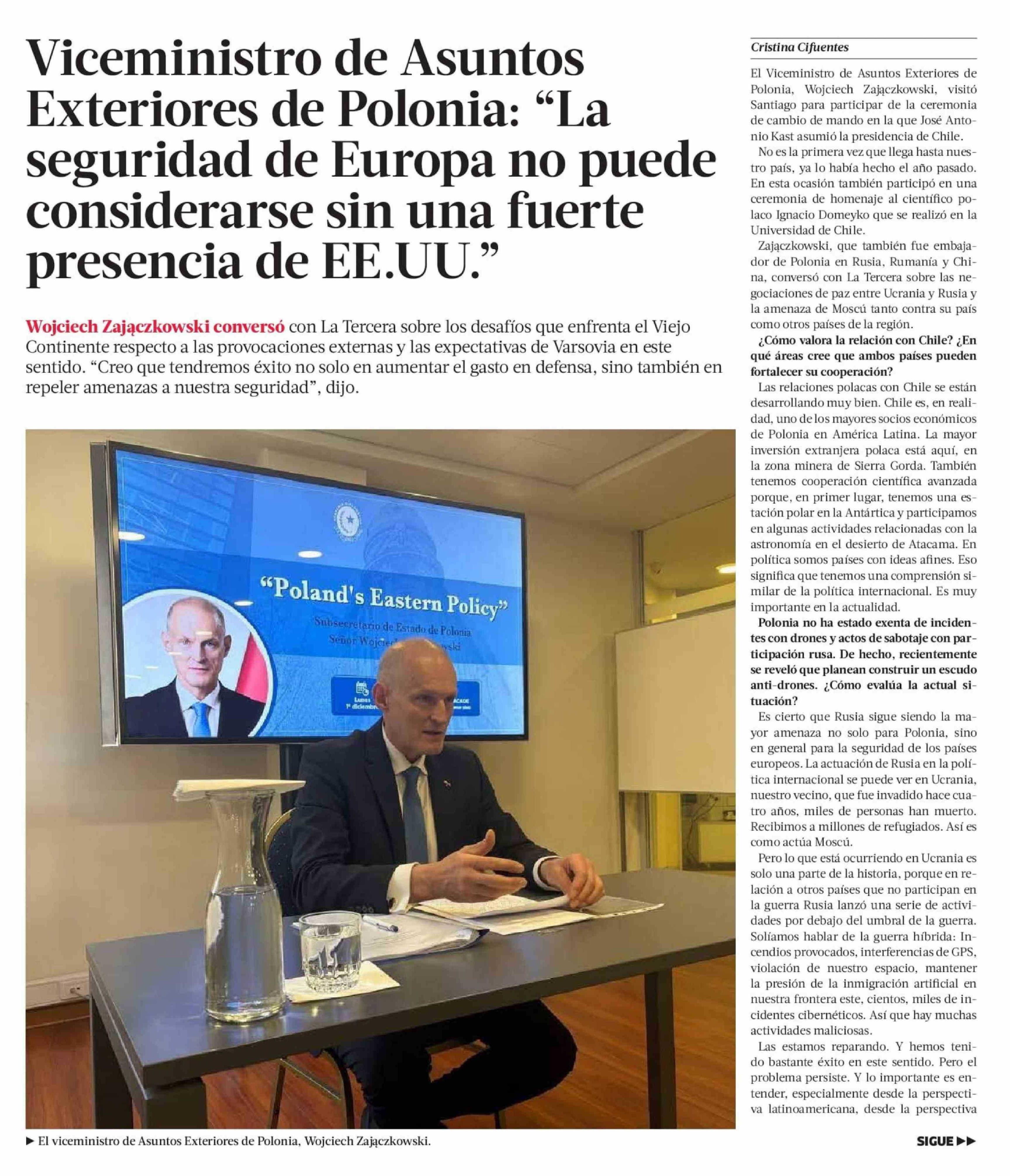 Viceministro de Asuntos Exteriores de Polonia: “La seguridad de Europa no puede considerarse sin una fuerte presencia de EE.UU.”