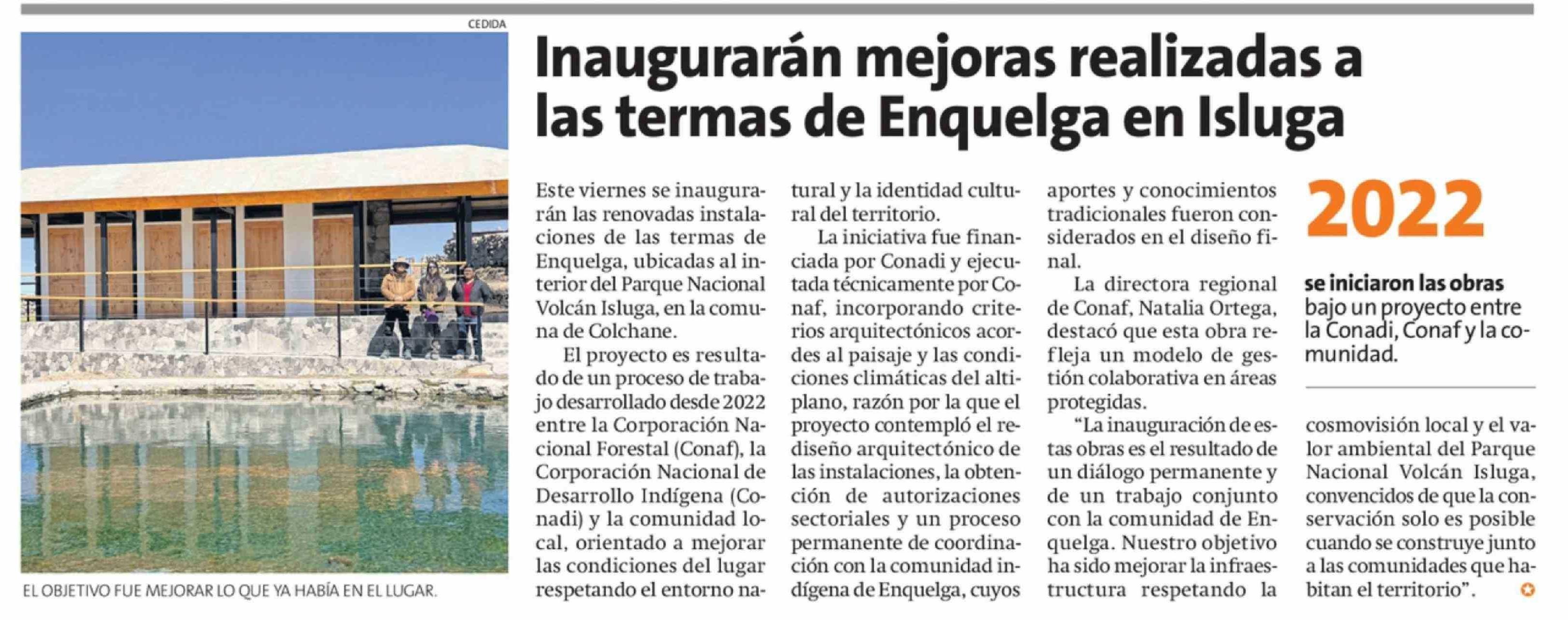 Inaugurarán mejoras realizadas a las termas de Enquelga en Isluga