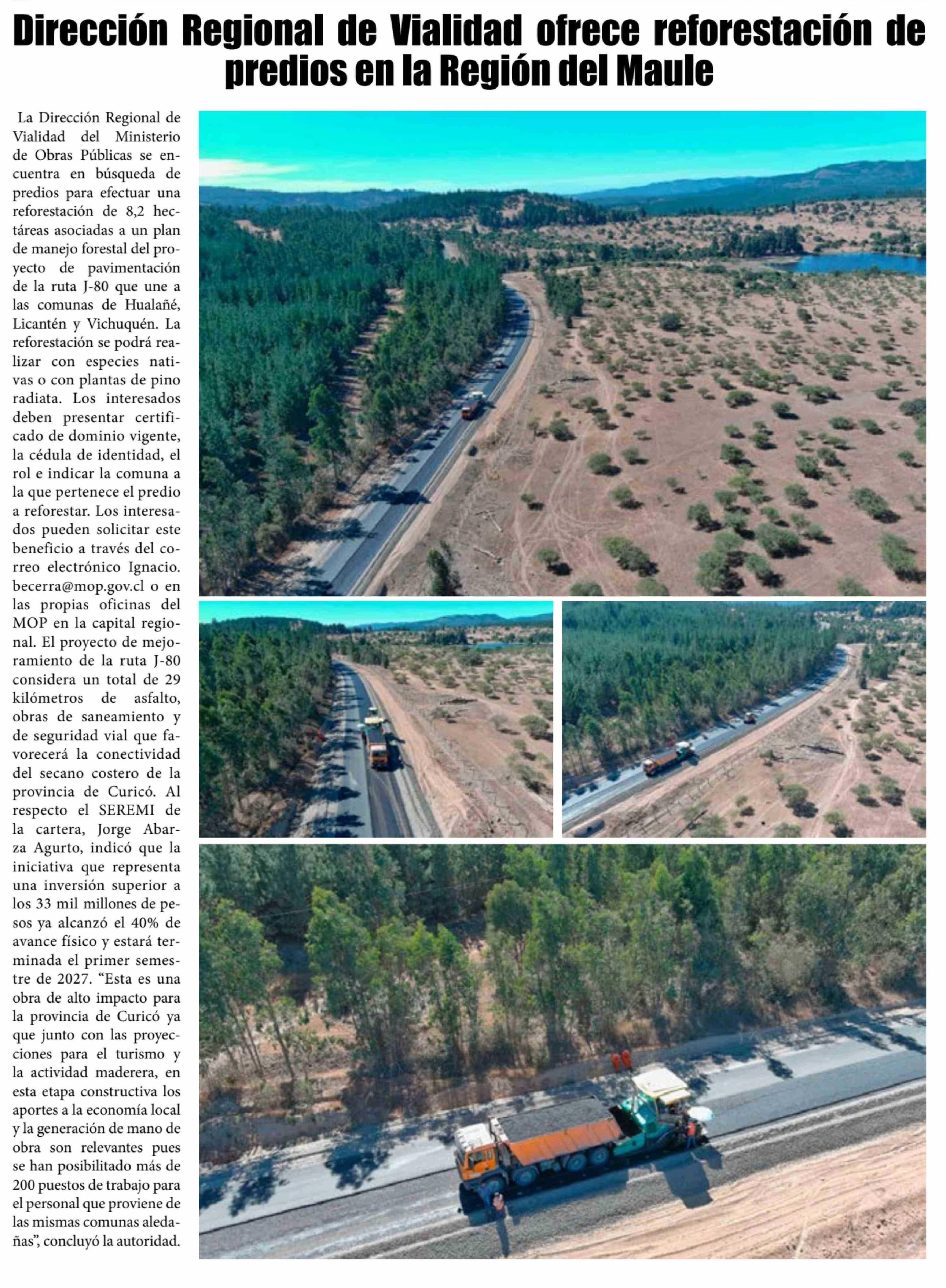 Dirección Regional de Vialidad ofrece reforestación de predios en la Región del Maule