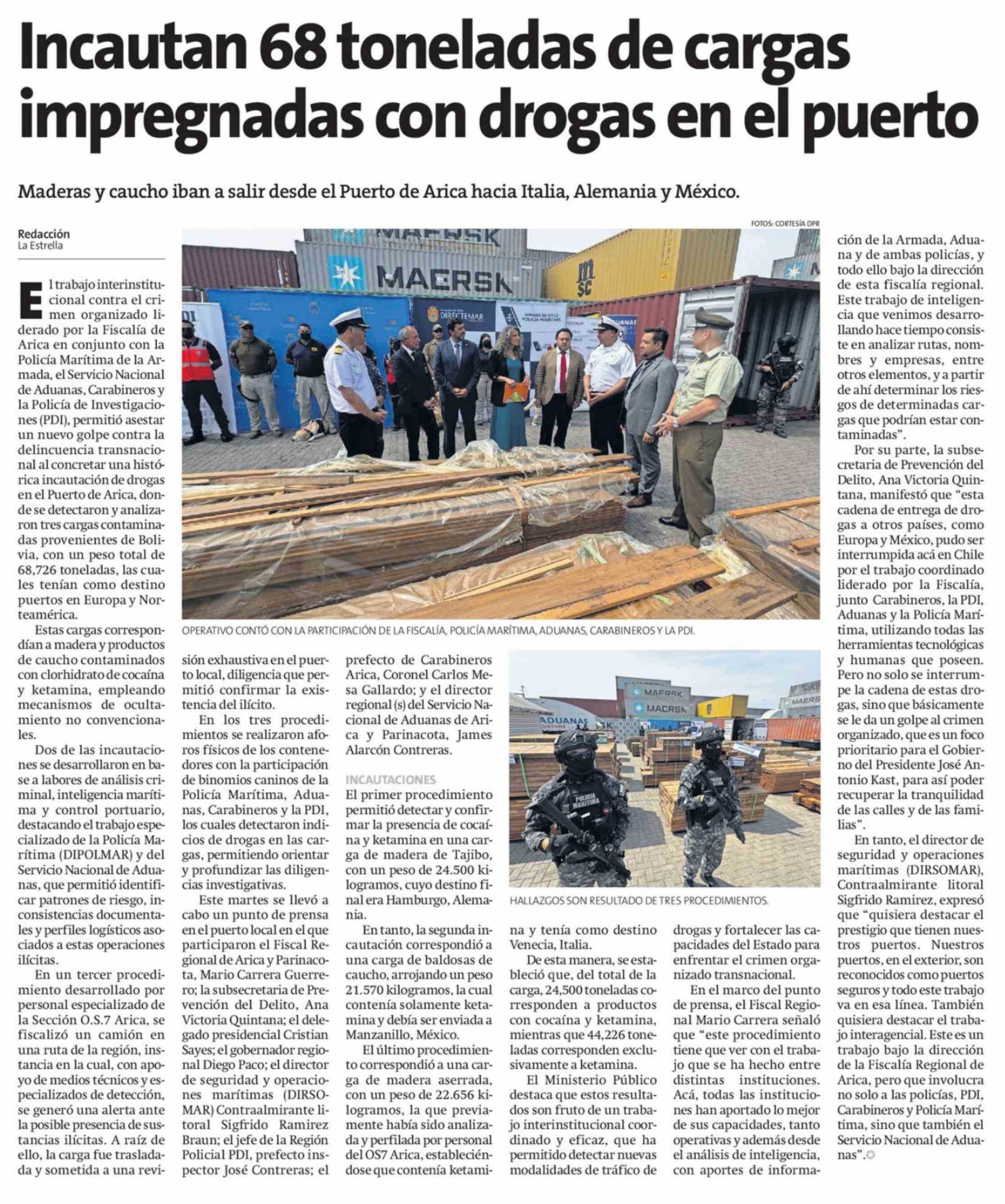 Incautan 68 toneladas de cargas impregnadas con drogas en el puerto