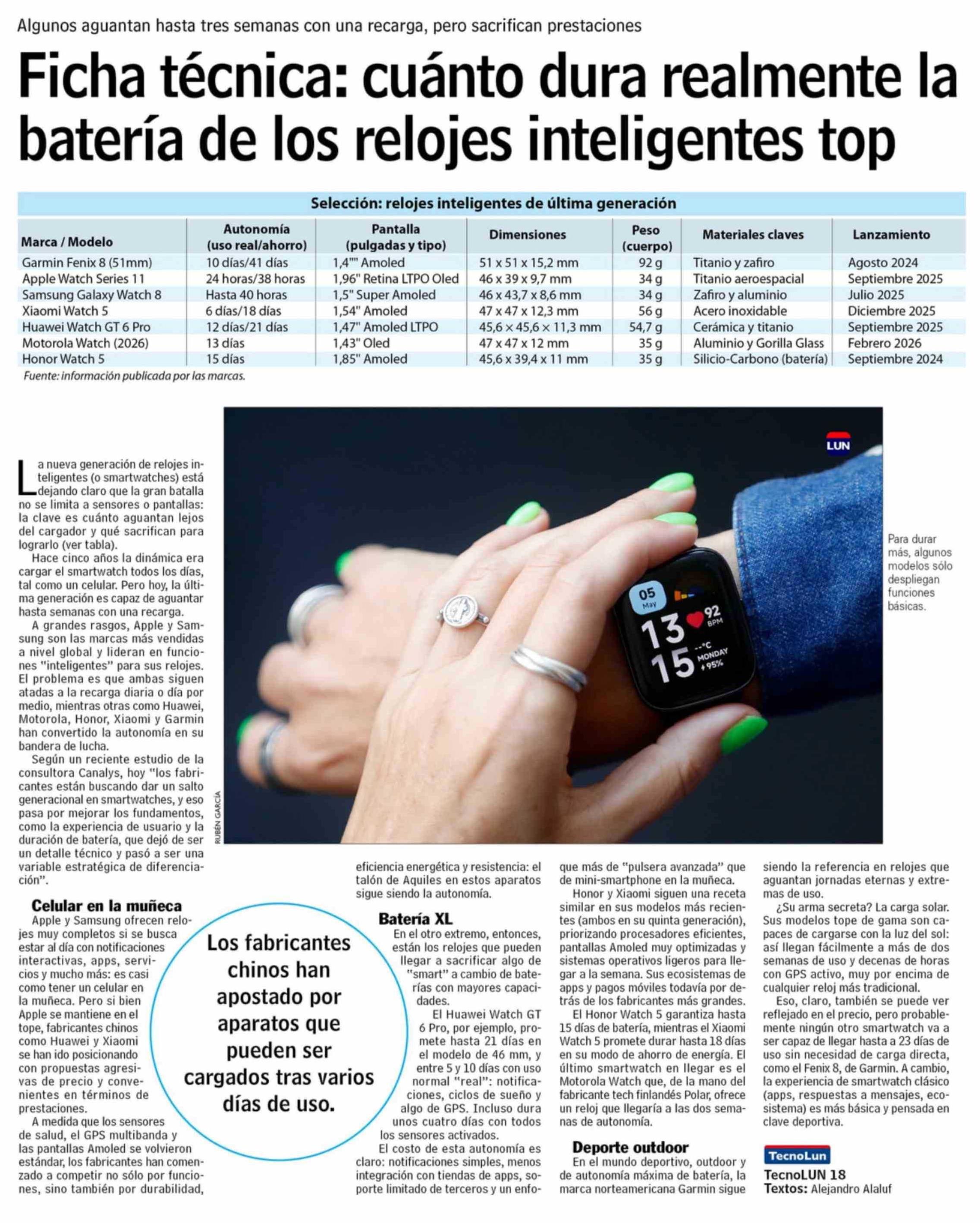 Ficha técnica: cuánto dura realmente la batería de los relojes inteligentes top