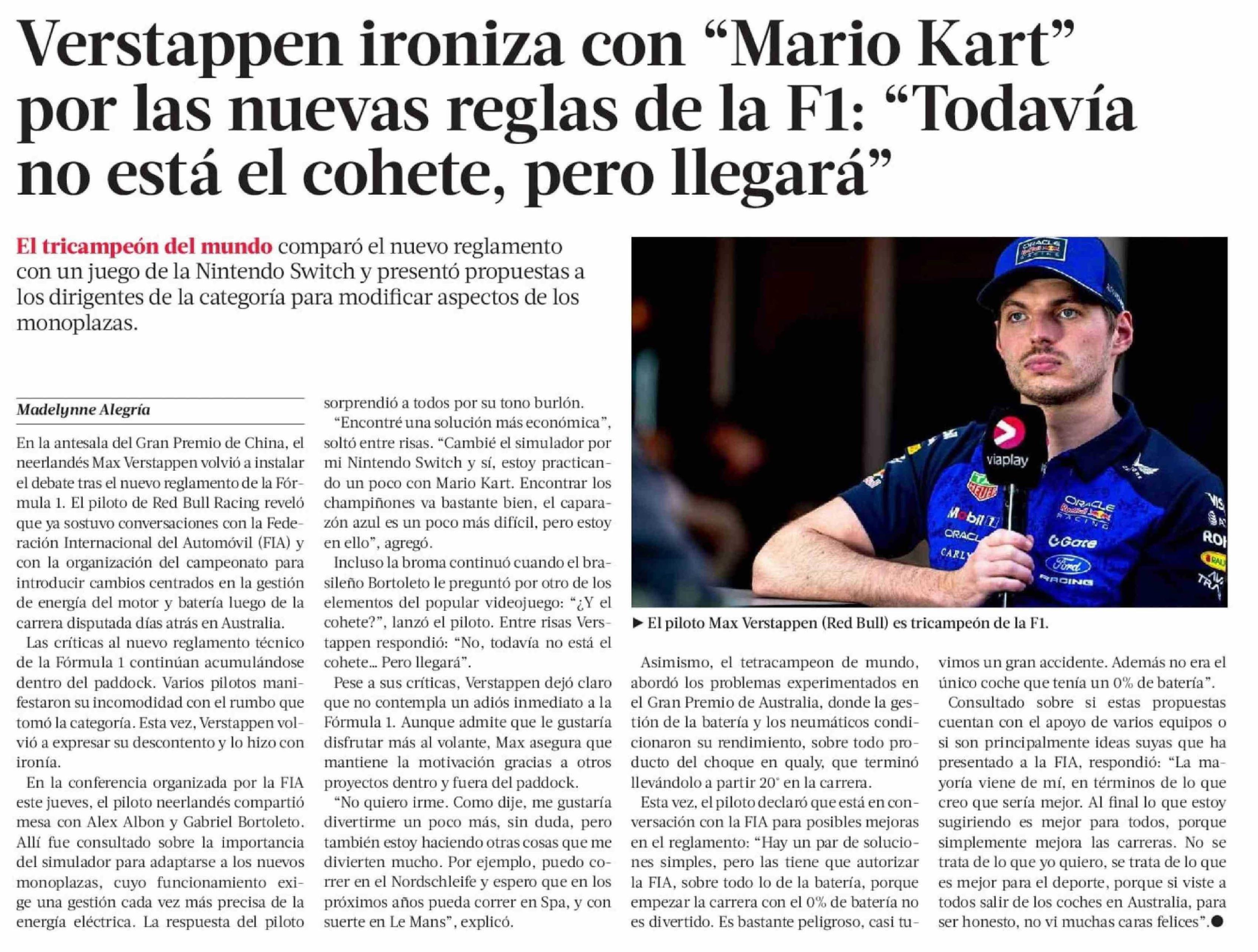 Verstappen ironiza con "Mario Kart" por las nuevas reglas de la F1: "Todavía no está el cohete, pero llegará"