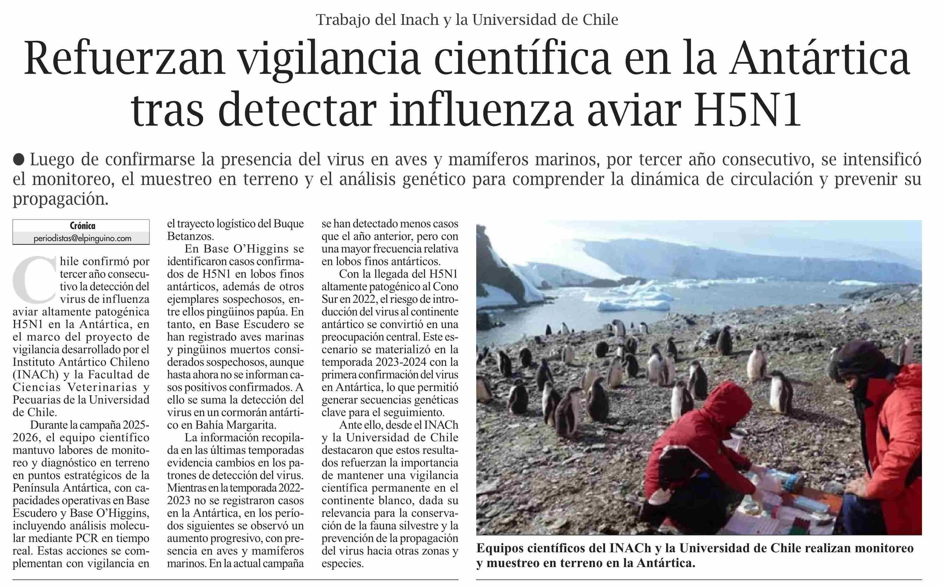 Refuerzan vigilancia científica en la Antártica tras detectar influenza aviar H5N1
