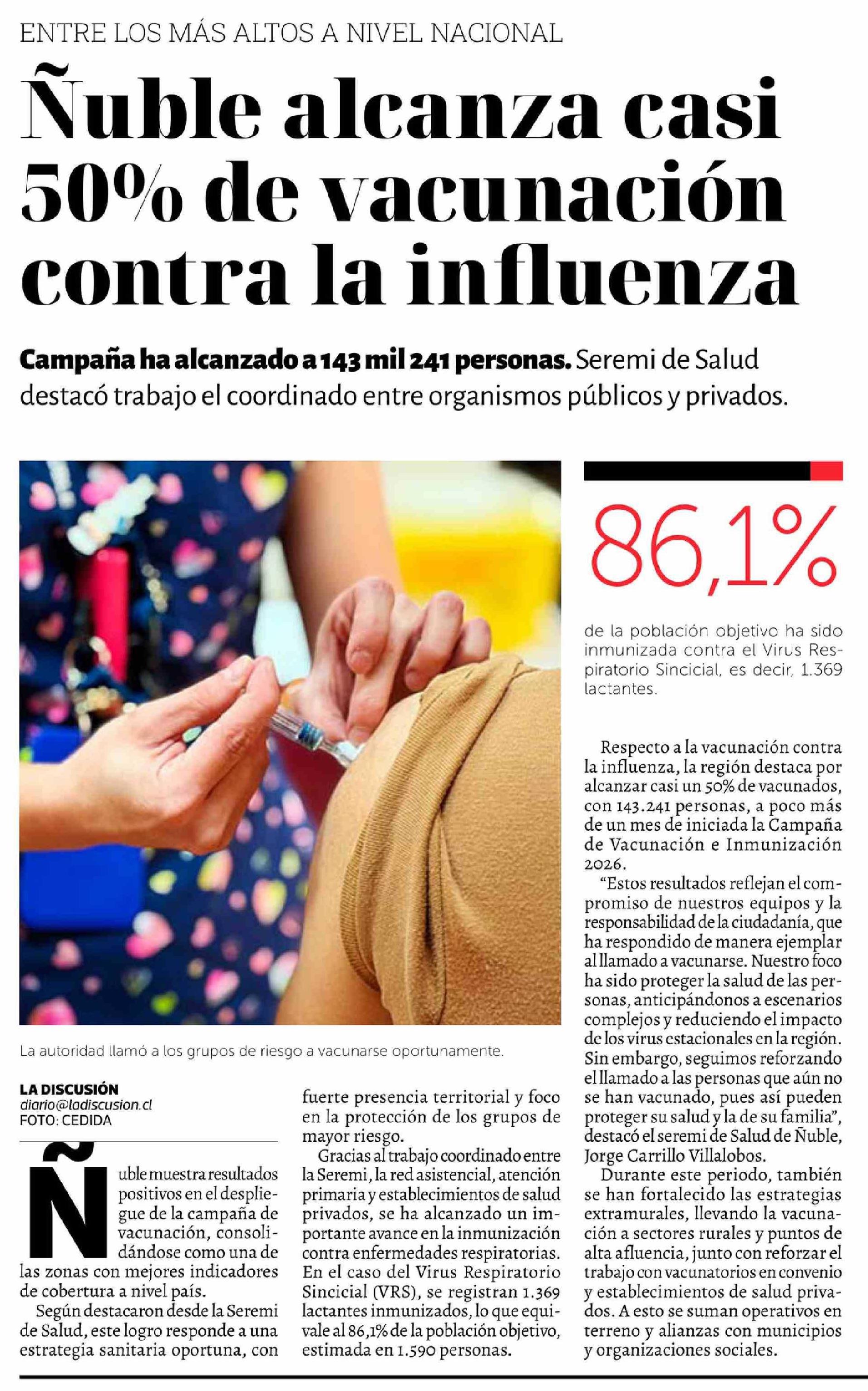 Ñuble alcanza casi 50% de vacunación contra la influenza