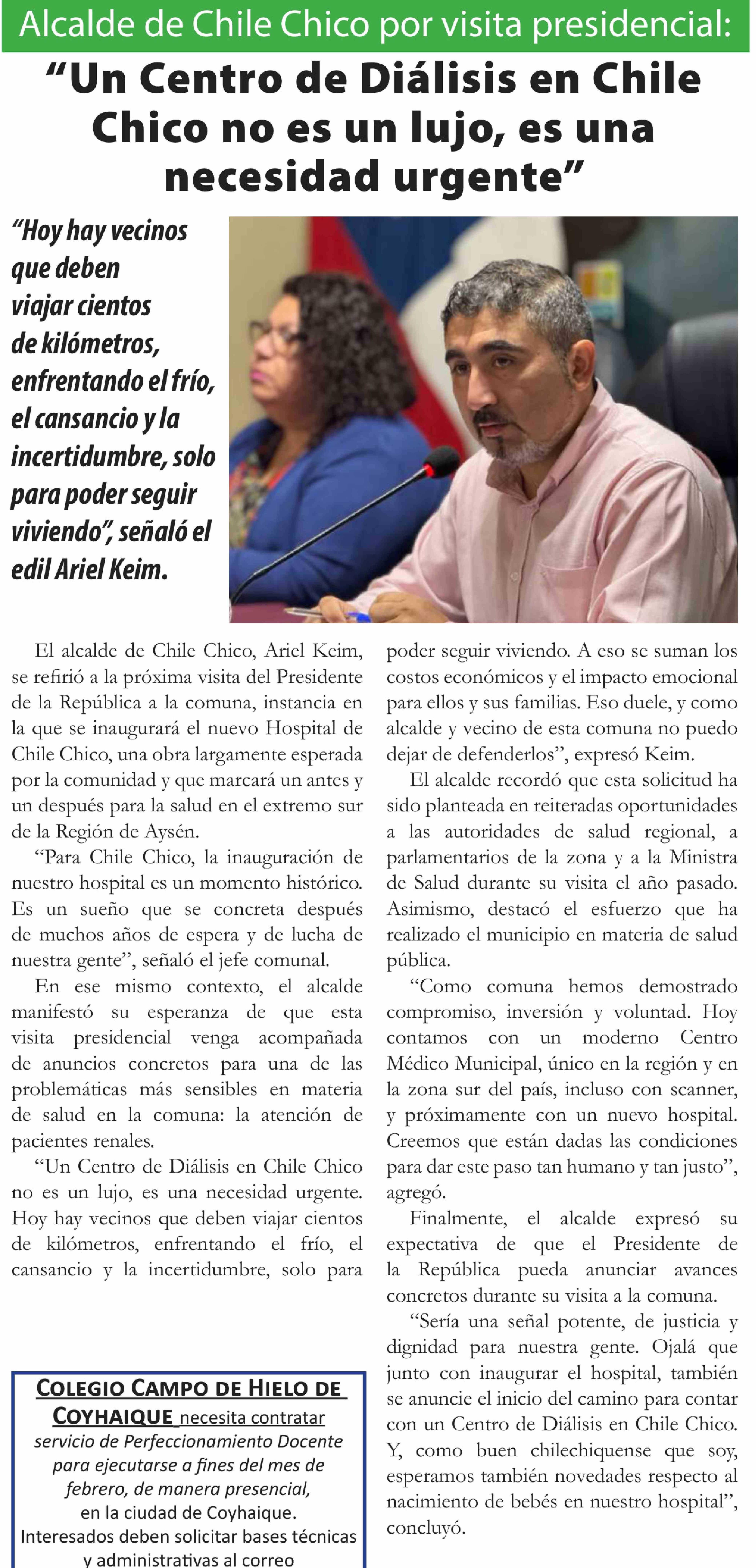 "Un Centro de Diálisis en Chile Chico no es un lujo, es una necesidad urgente"