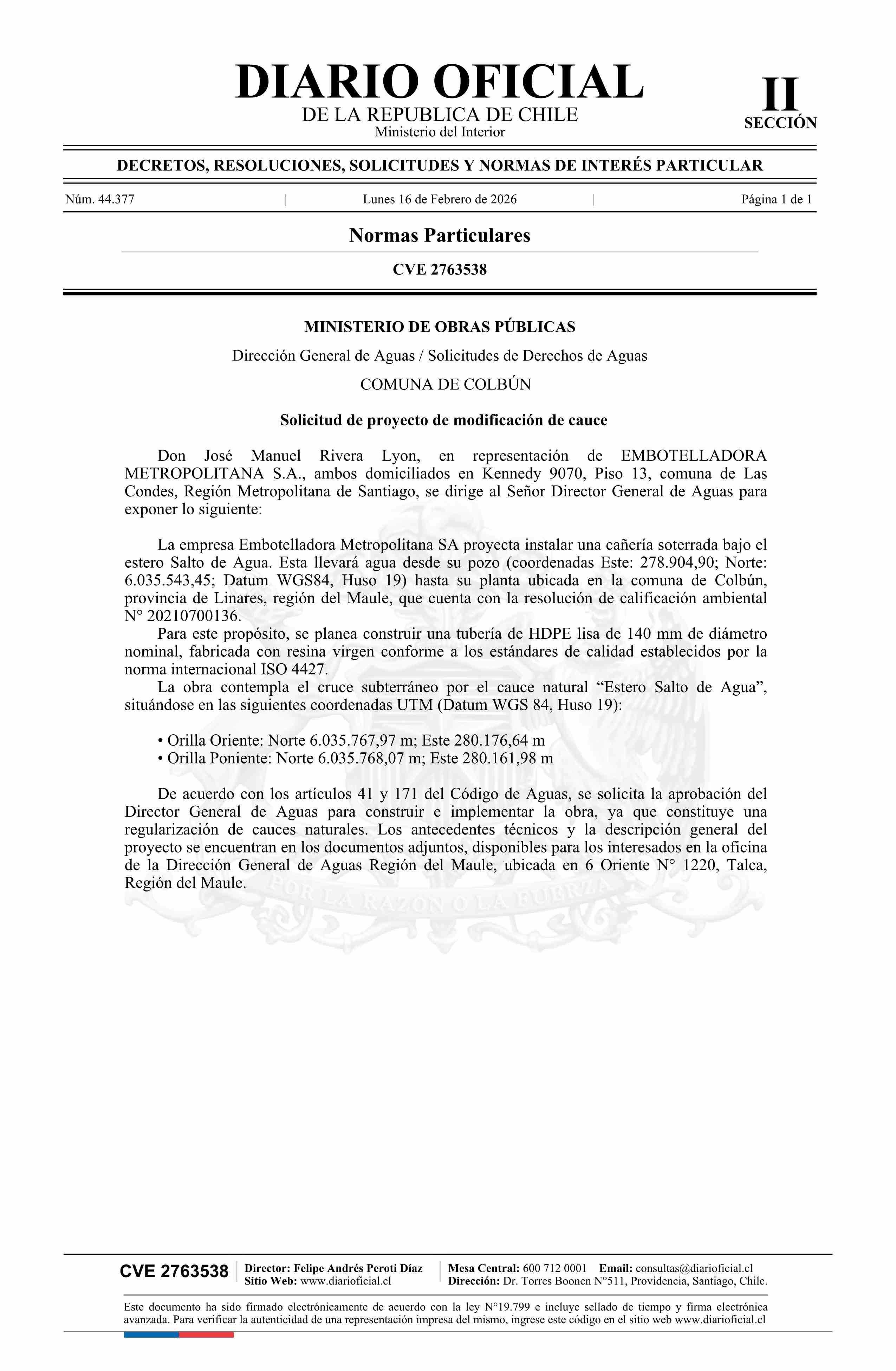 Diario Oficial Edición Electrónica (Diario Oficial de Chile - 2 Normas Particulares)