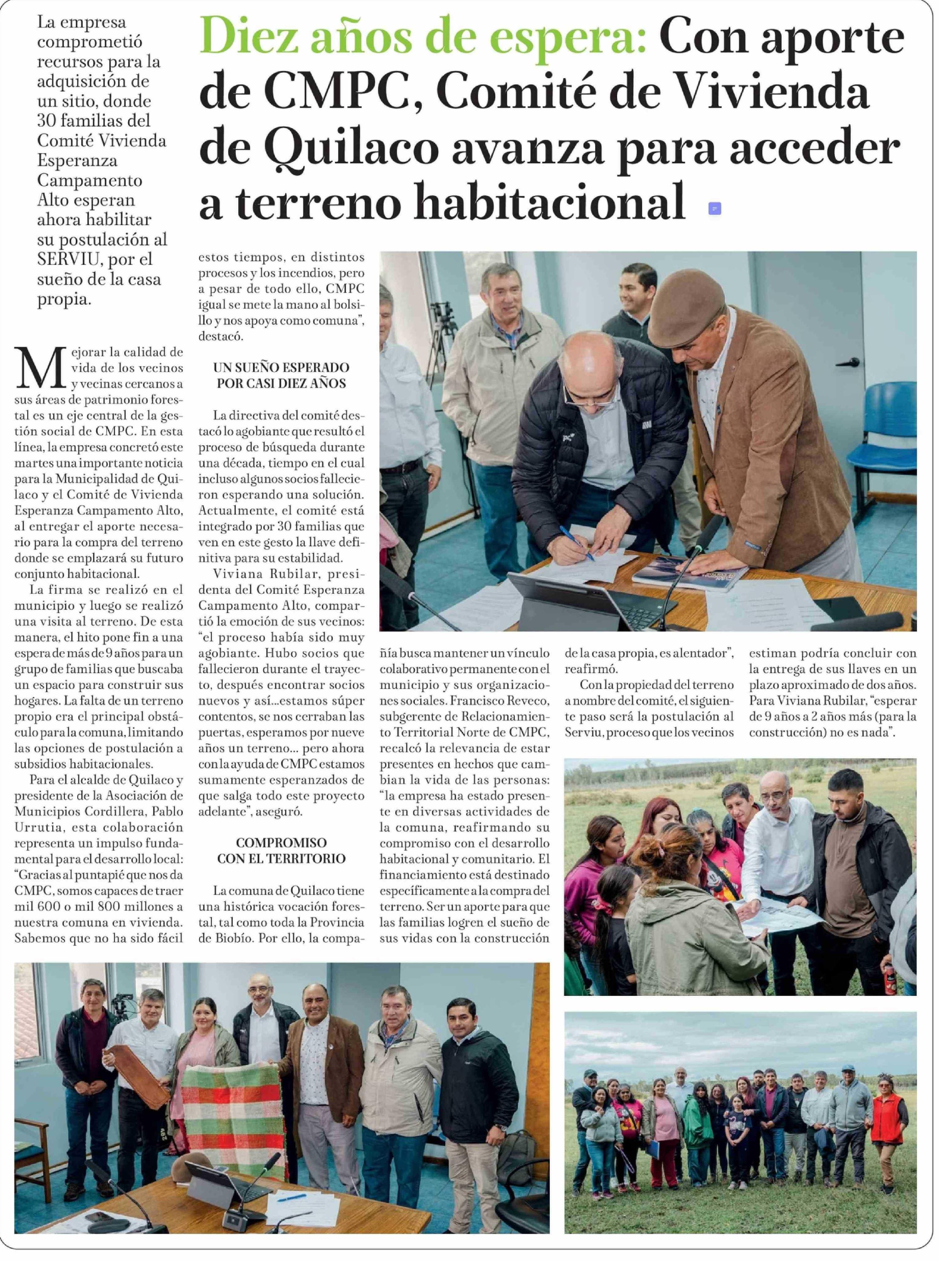 Diez años de espera: Con aporte de CMPC, Comité de Vivienda de Quilaco avanza para acceder a terreno habitacional