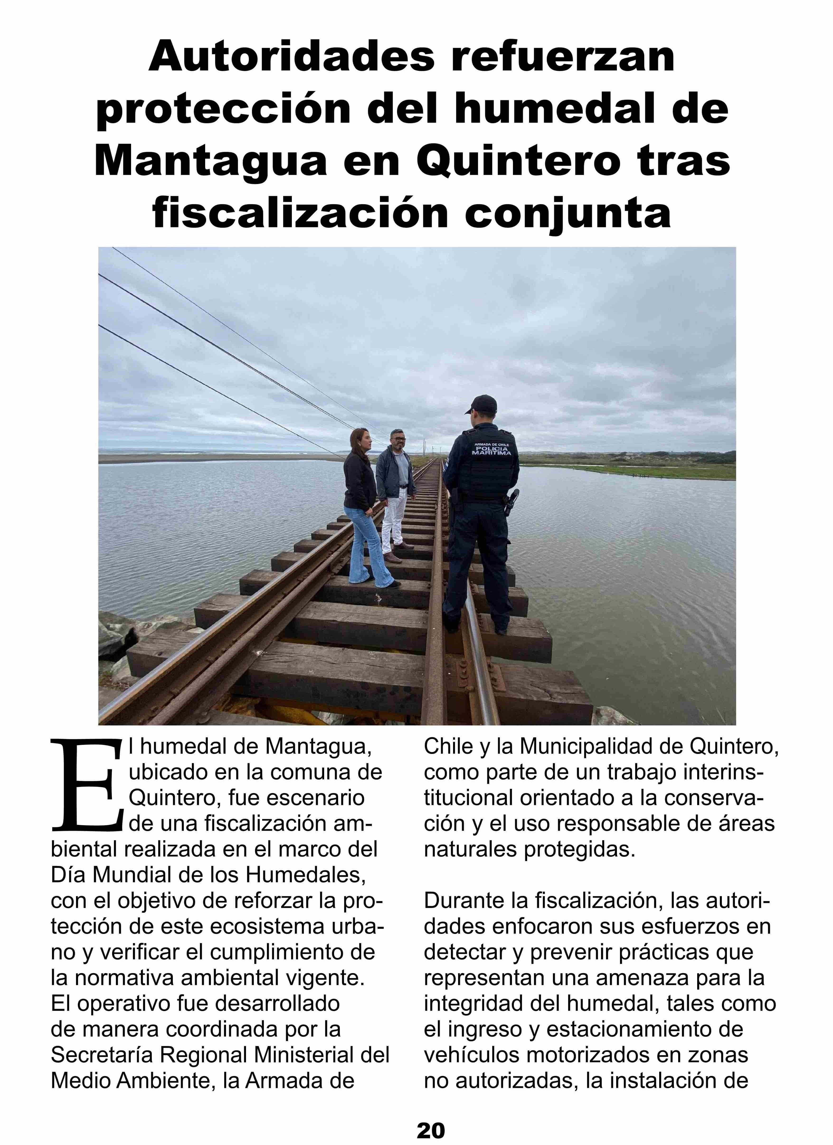 | Título: | Autoridades refuerzan protección del humedal de Mantagua en Quintero tras fiscalización conjunta |