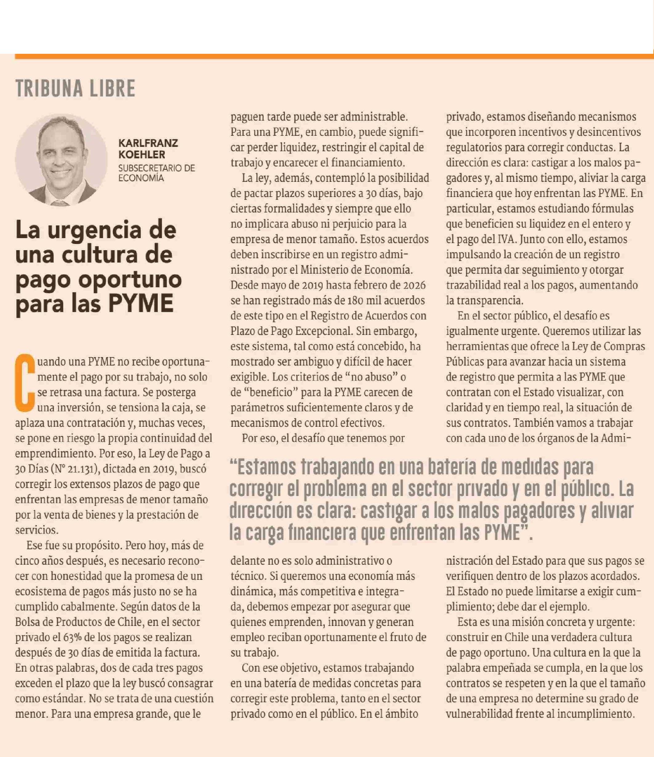 COLUMNAS DE OPINIÓN: La urgencia de una cultura de pago oportuno para las PYME