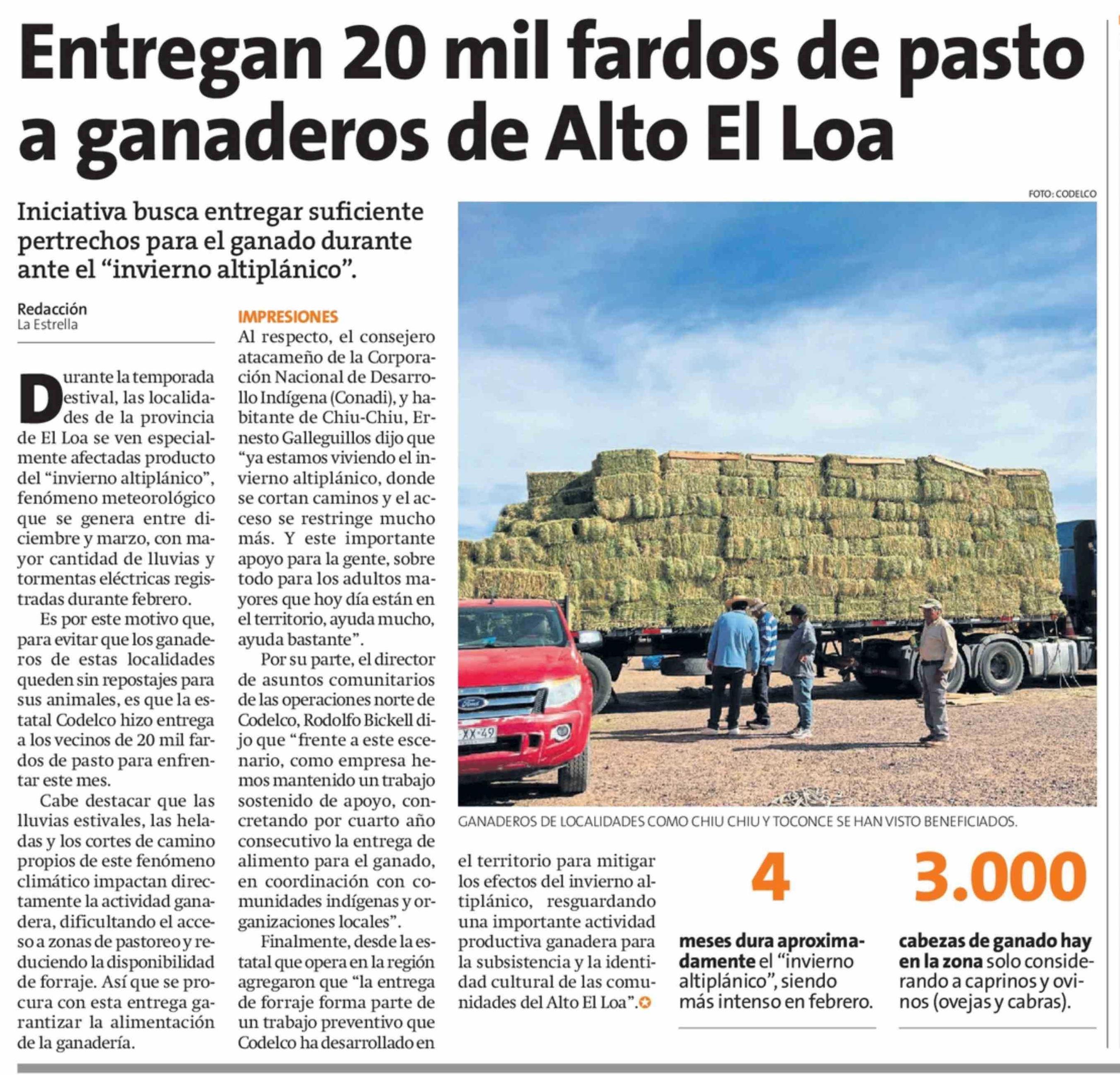 Entregan 20 mil fardos de pasto a ganaderos de Alto El Loa