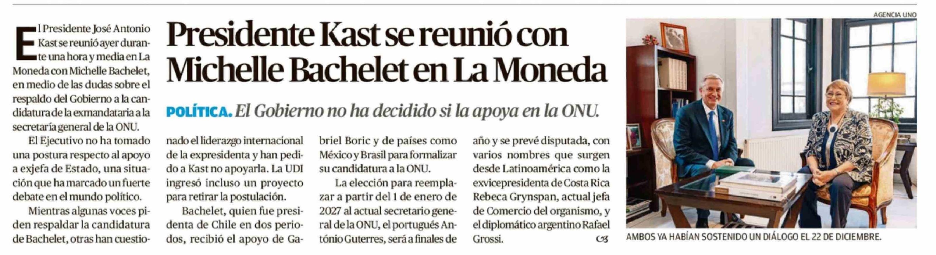 Presidente Kast se reunió con Michelle Bachelet en La Moneda