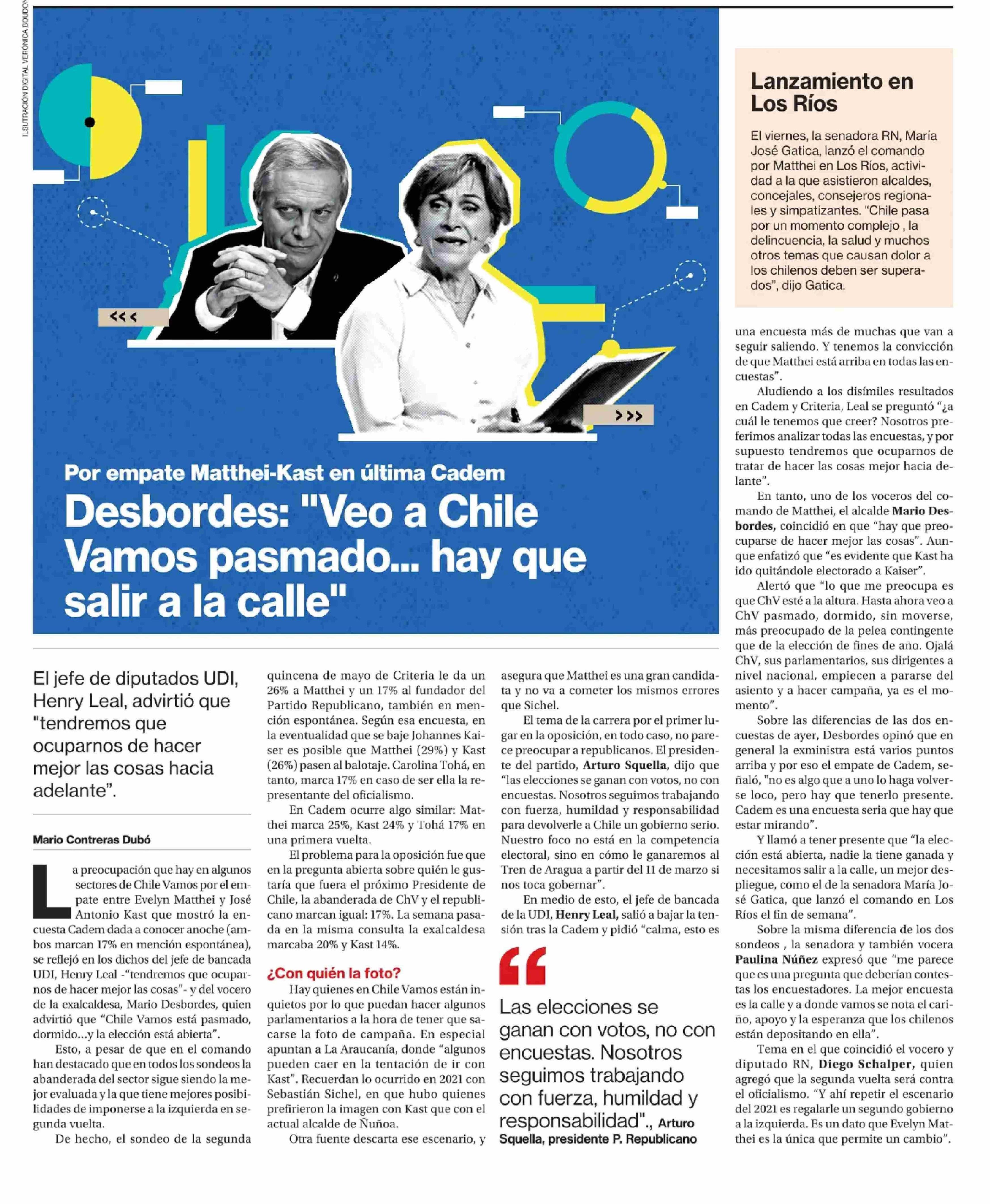 Desbordes: "Veo a Chile Vamos pasmado...hay que salir a la calle"