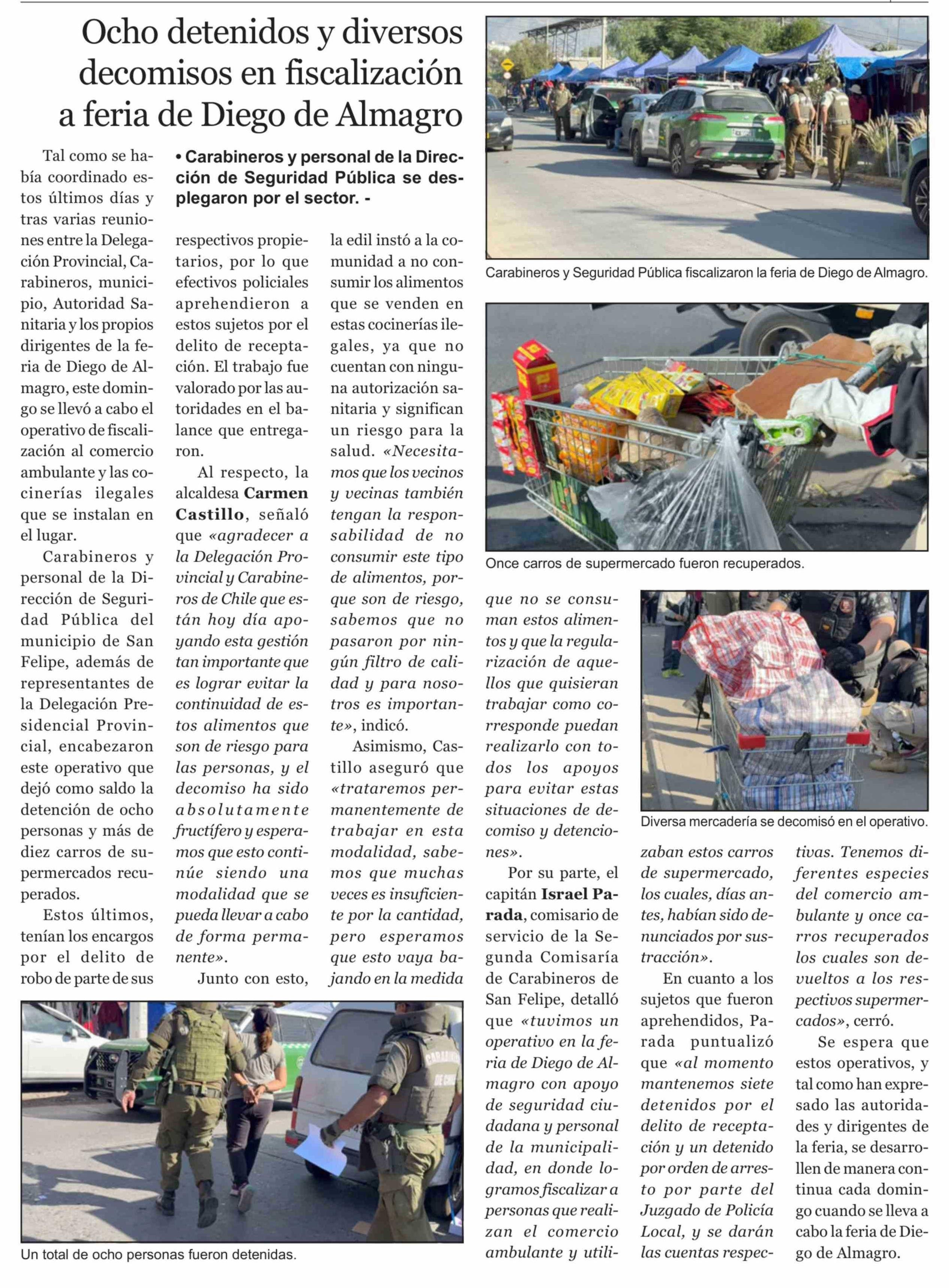 Ocho detenidos y diversos decomisos en fiscalización a feria de Diego de Almagro