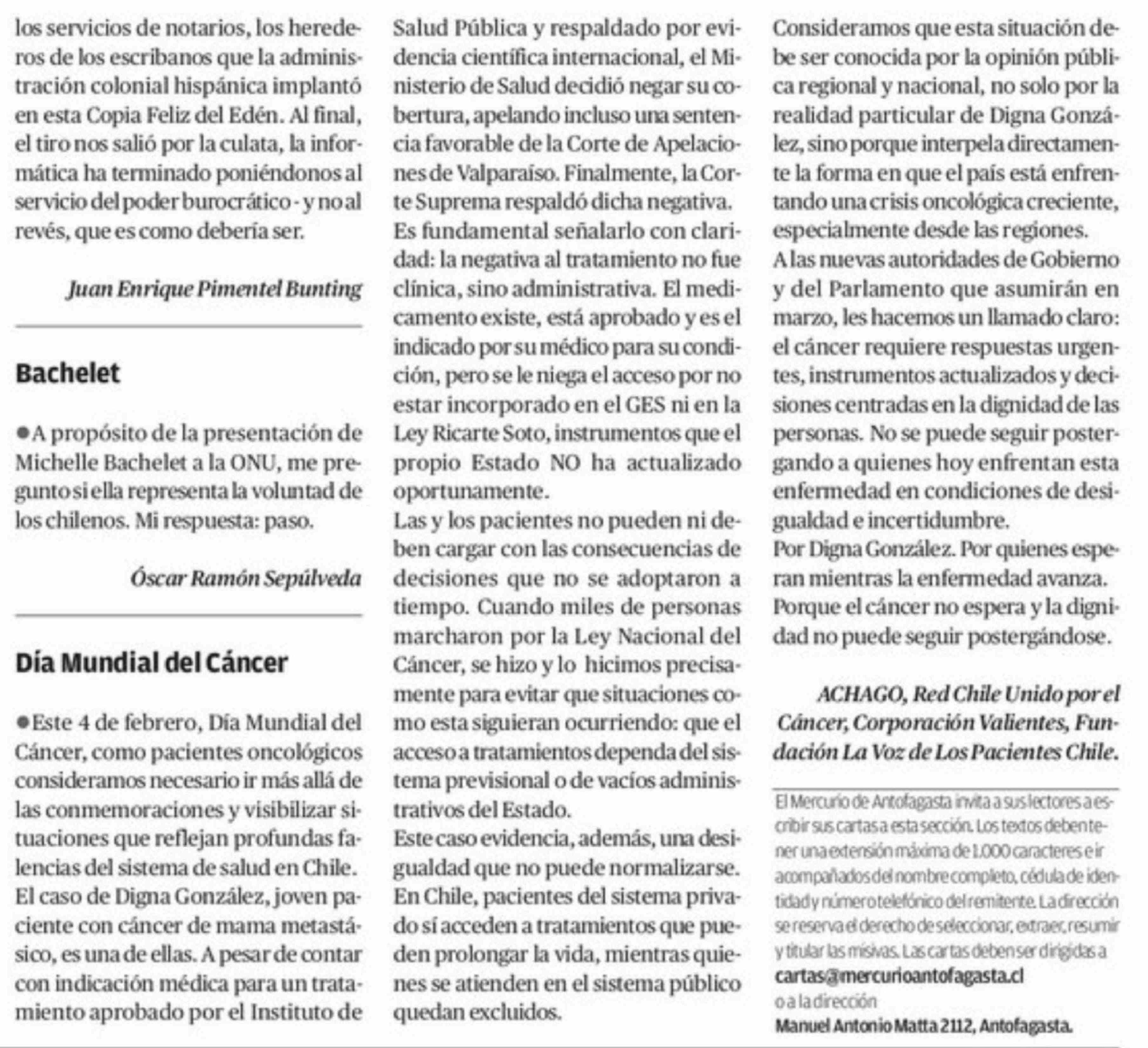 Cartas: Día Mundial del Cáncer