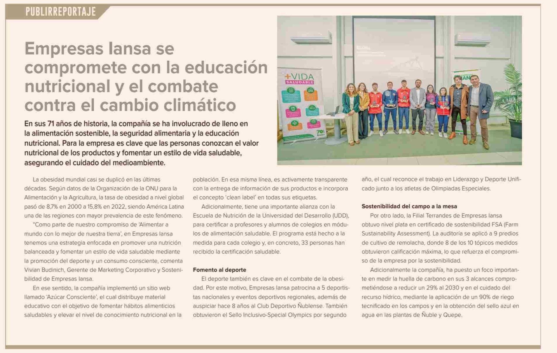 Empresas lansa se compromete con la educación nutricional y el combate contra el cambio climático