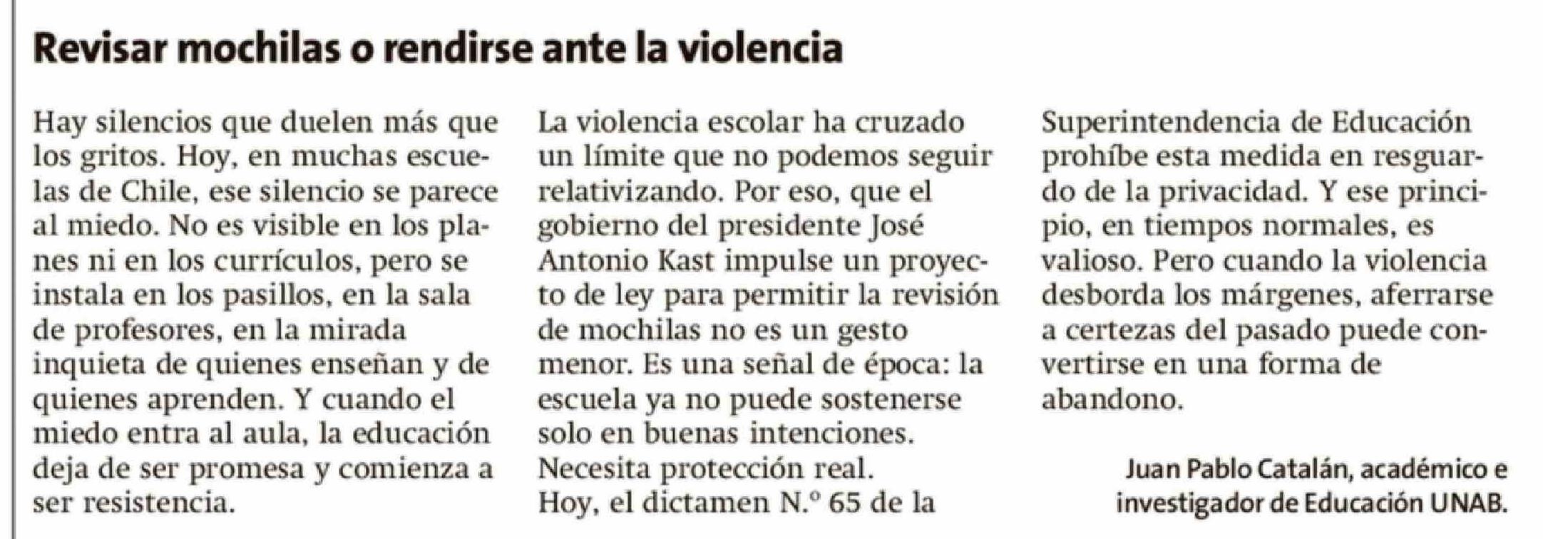 Columnas de Opinión: Revisar mochilas o rendirse ante la violencia