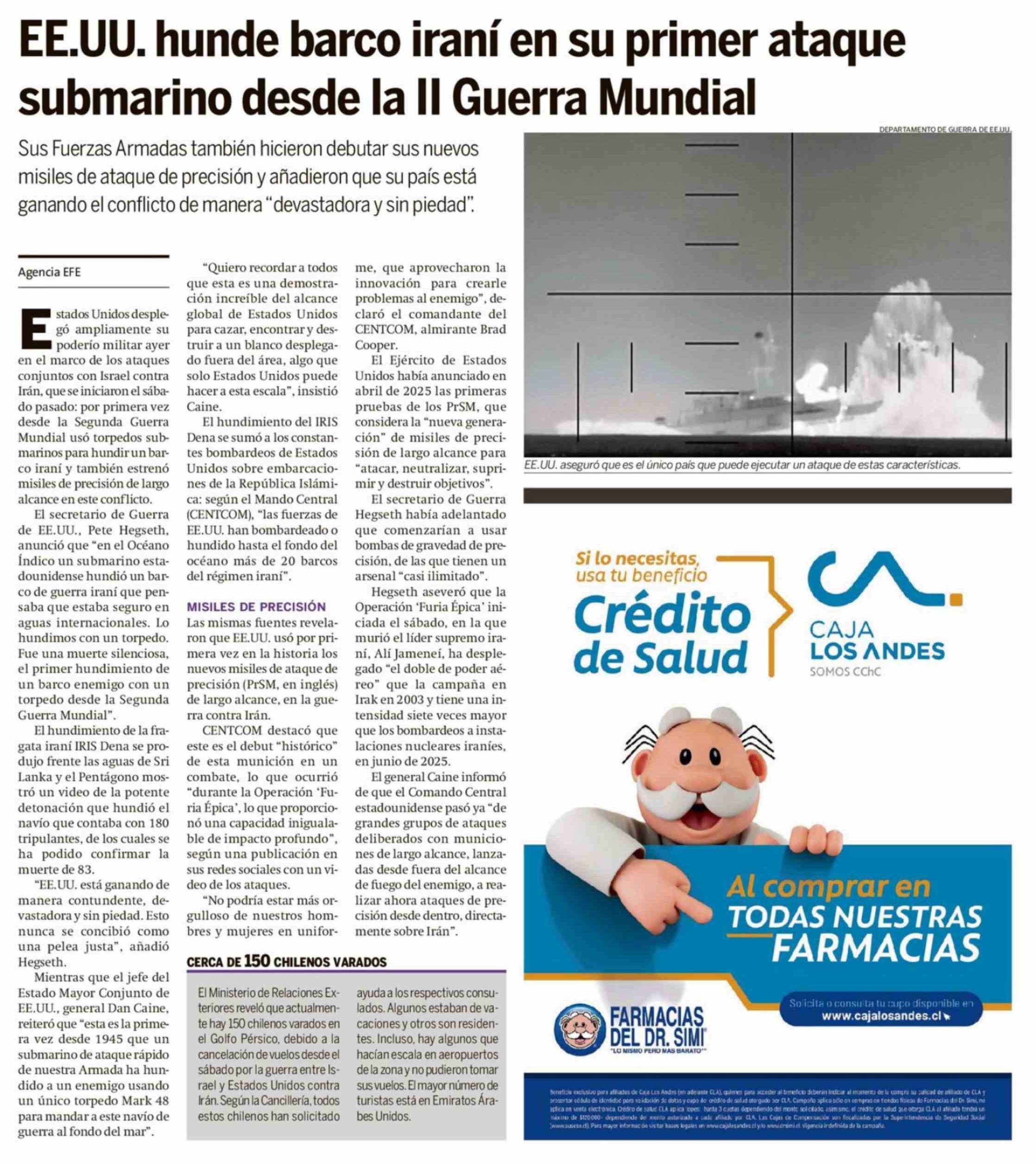 EE.UU. hunde barco iraní en su primer ataque submarino desde la II Guerra Mundial