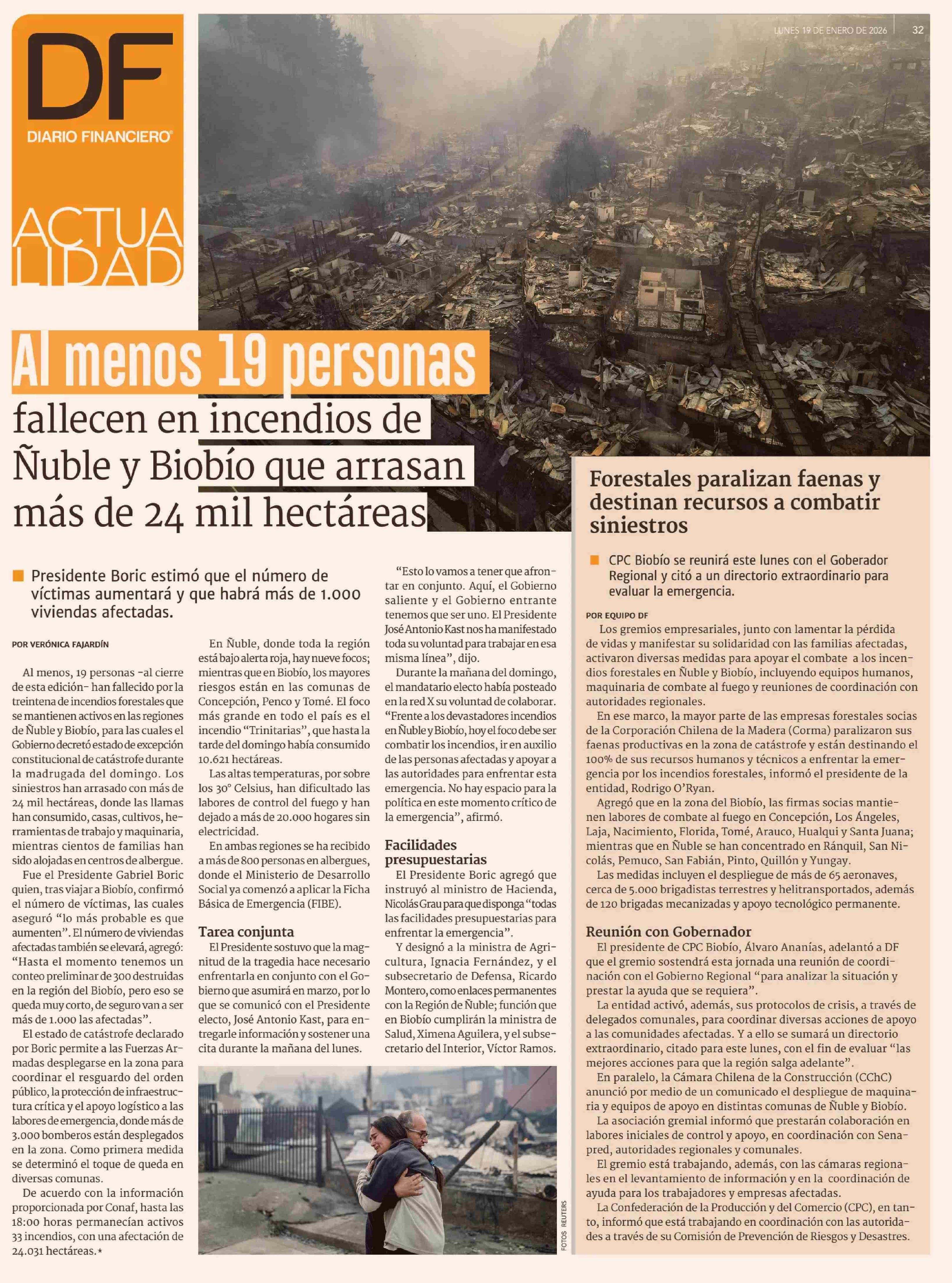 Al menos 19 personas fallecen en incendios de Ñuble y Biobío que arrasan más de 24 mil hectáreas