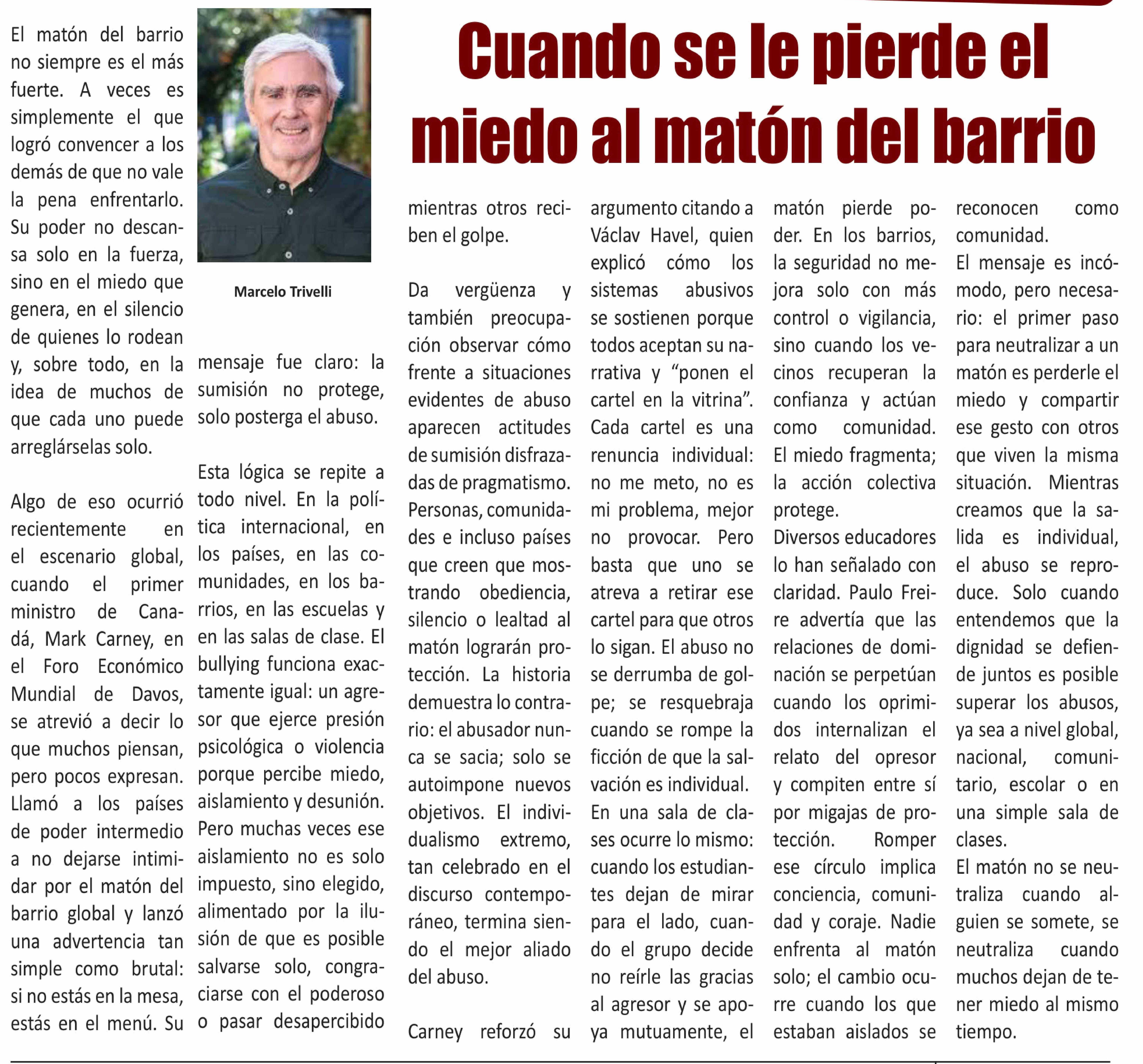 Columnas de Opinión: Cuando se le pierde el miedo al matón del barrio