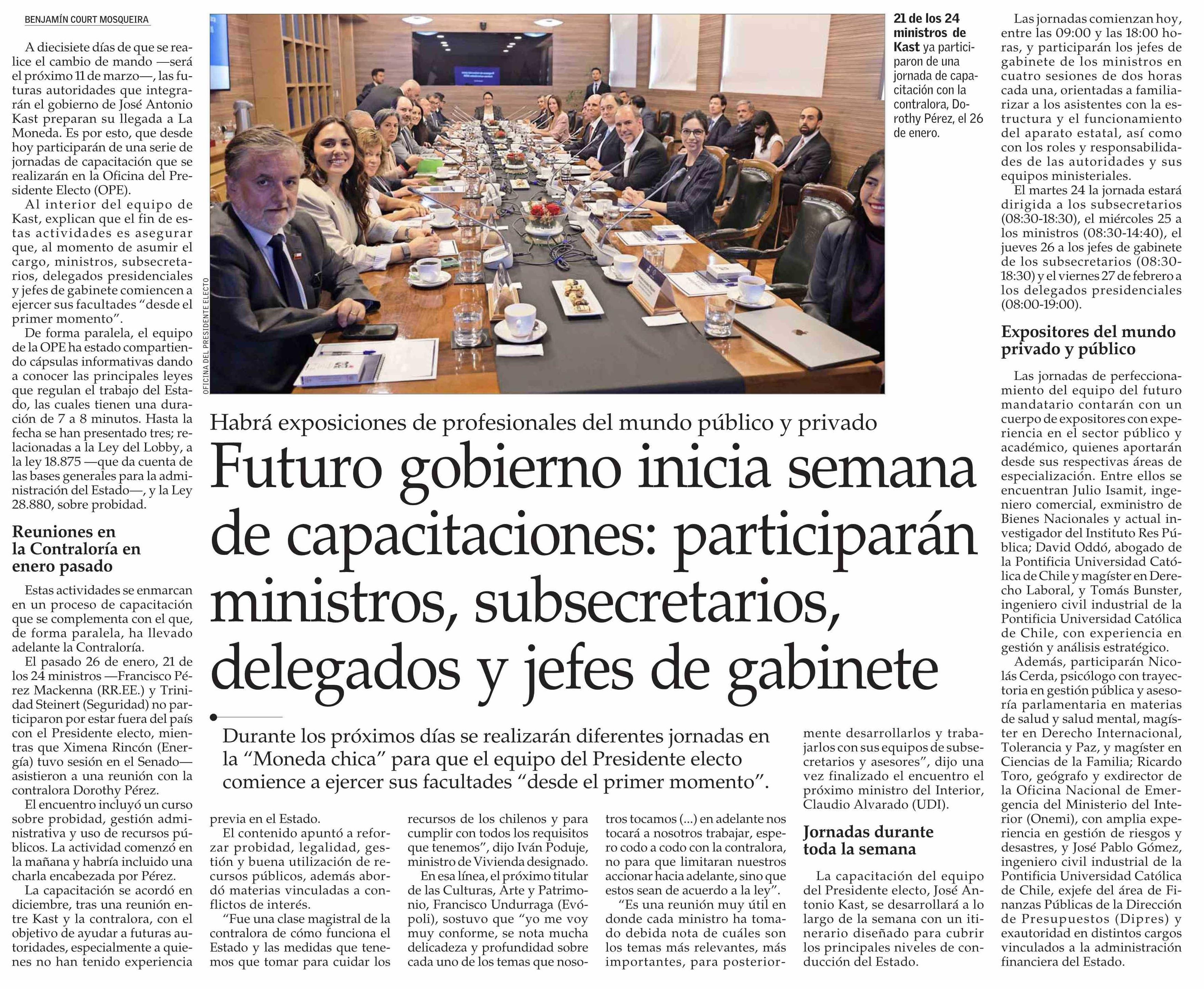 Futuro gobierno inicia semana de capacitaciones: participarán ministros, subsecretarios, delegados y jefes de gabinete