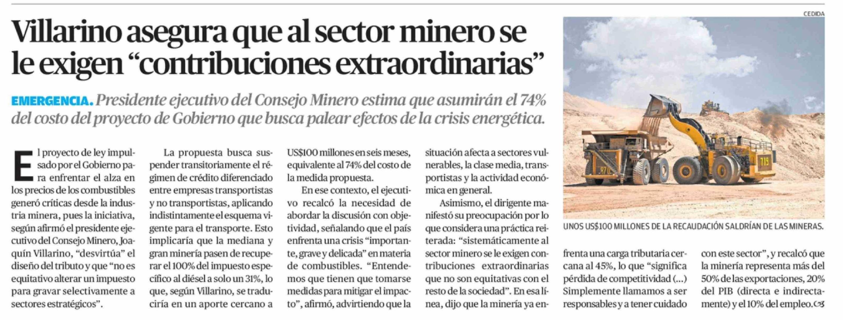 Villarino asegura que al sector minero se le exigen "contribuciones extraordinarias"