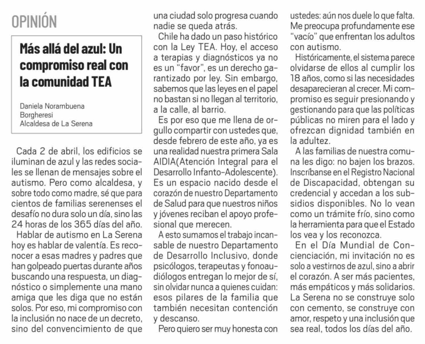 Columnas de Opinión: Más allá del azul: Un compromiso real con la comunidad TEA