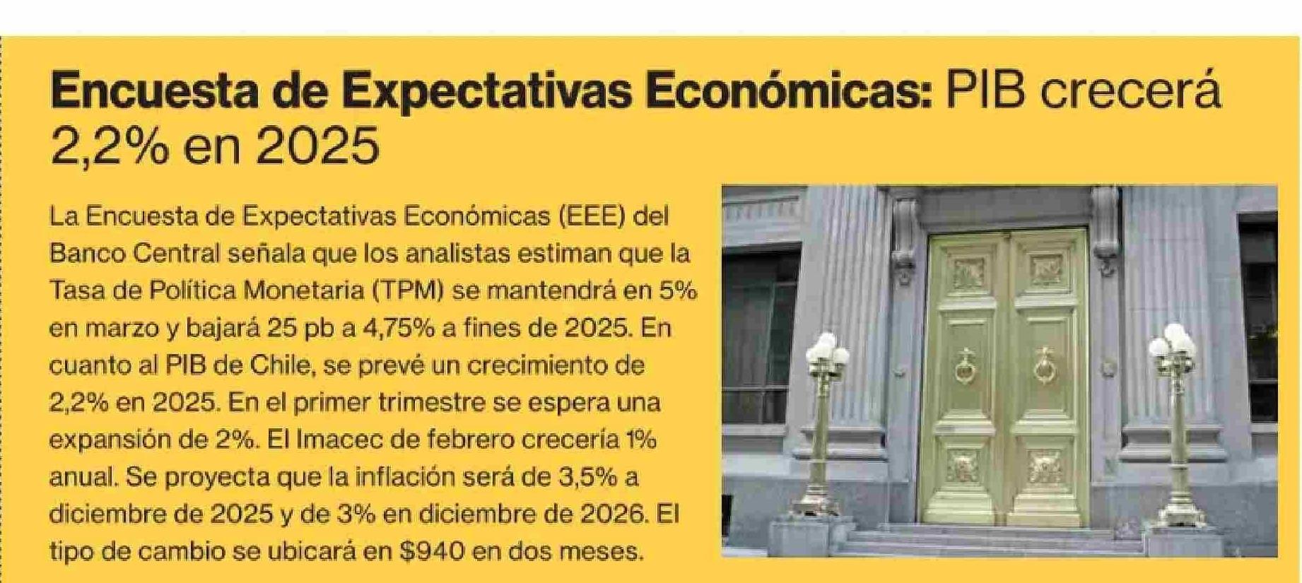 Encuesta de Expectativas Económicas: PIB crecerá 2,2% en 2025