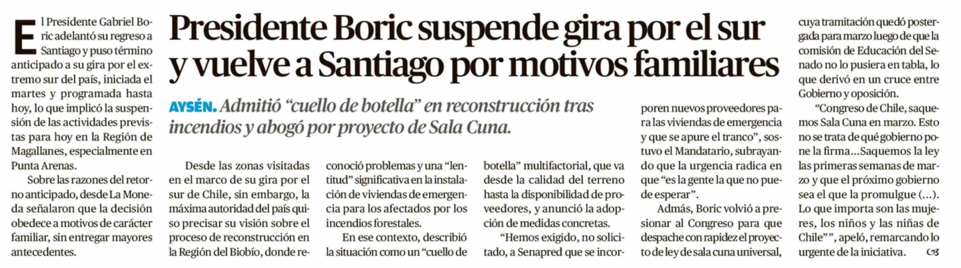 Presidente Boric suspende gira por el sur y vuelve a Santiago por motivos familiares