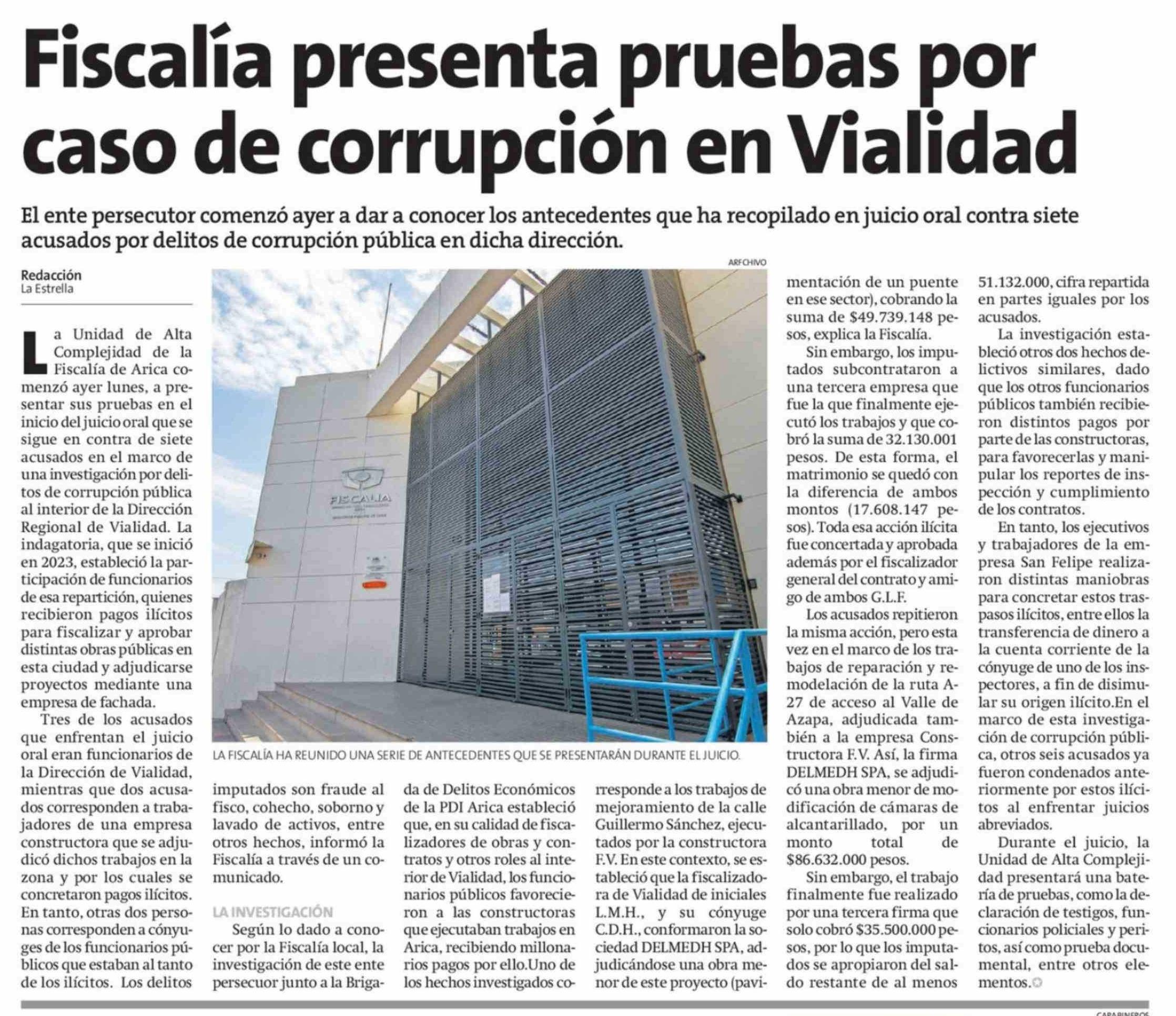 Fiscalía presenta pruebas por caso de corrupción en Vialidad