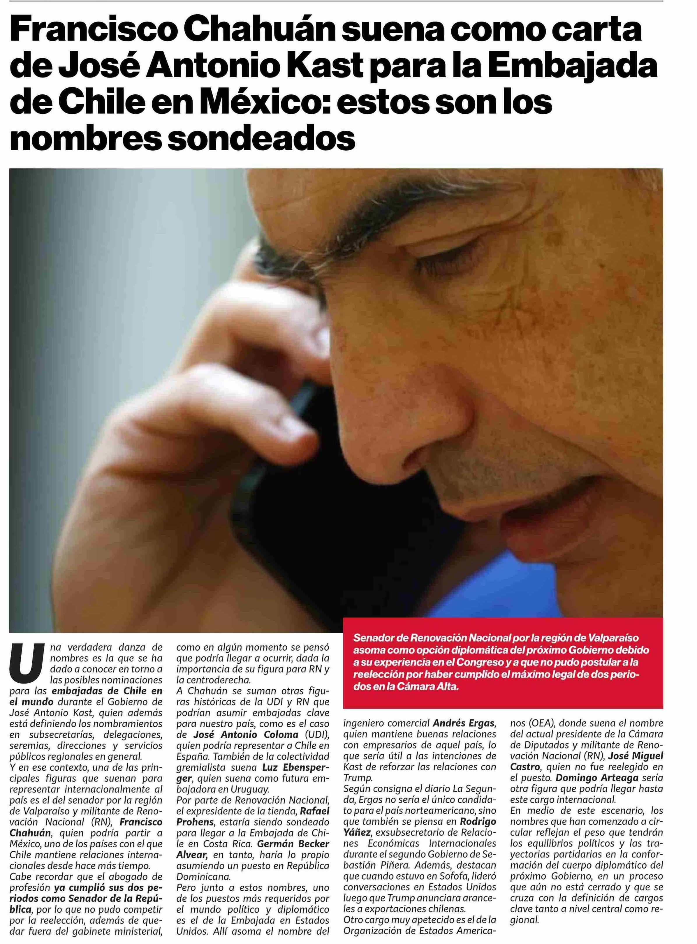 Francisco Chahuán suena como carta de José Antonio Kast para la Embajada de Chile en México: estos son los nombres sondeados