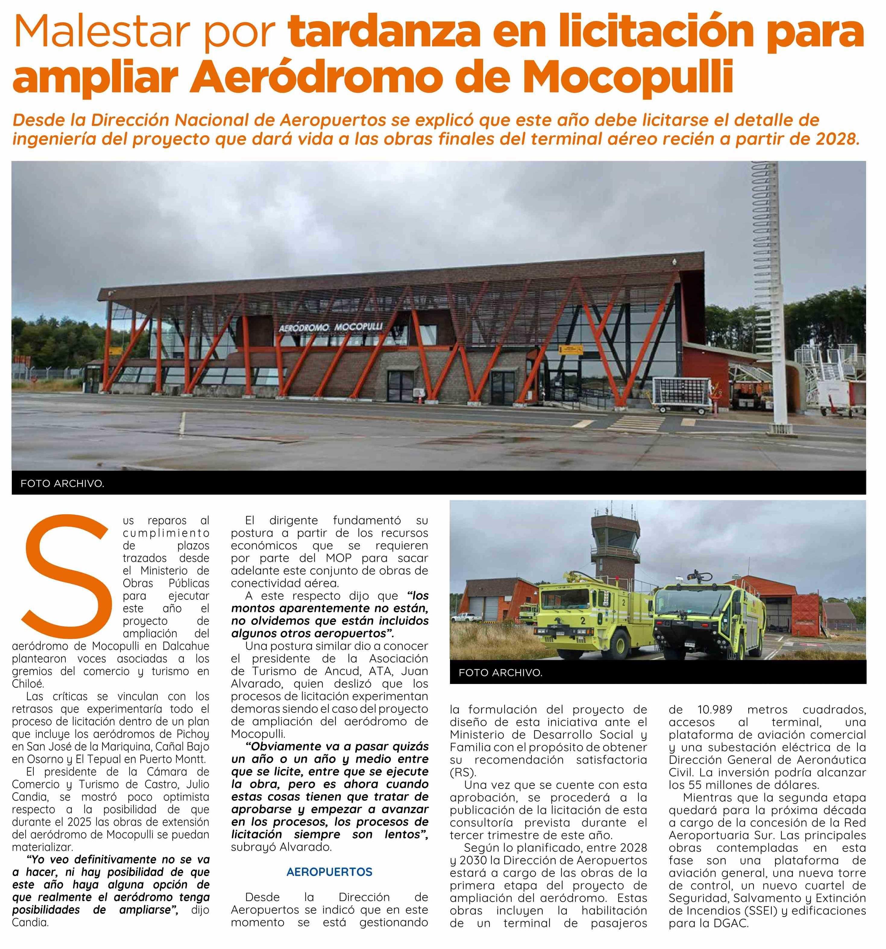 Malestar por tardanza en licitación para ampliar Aeródromo de Mocopulli