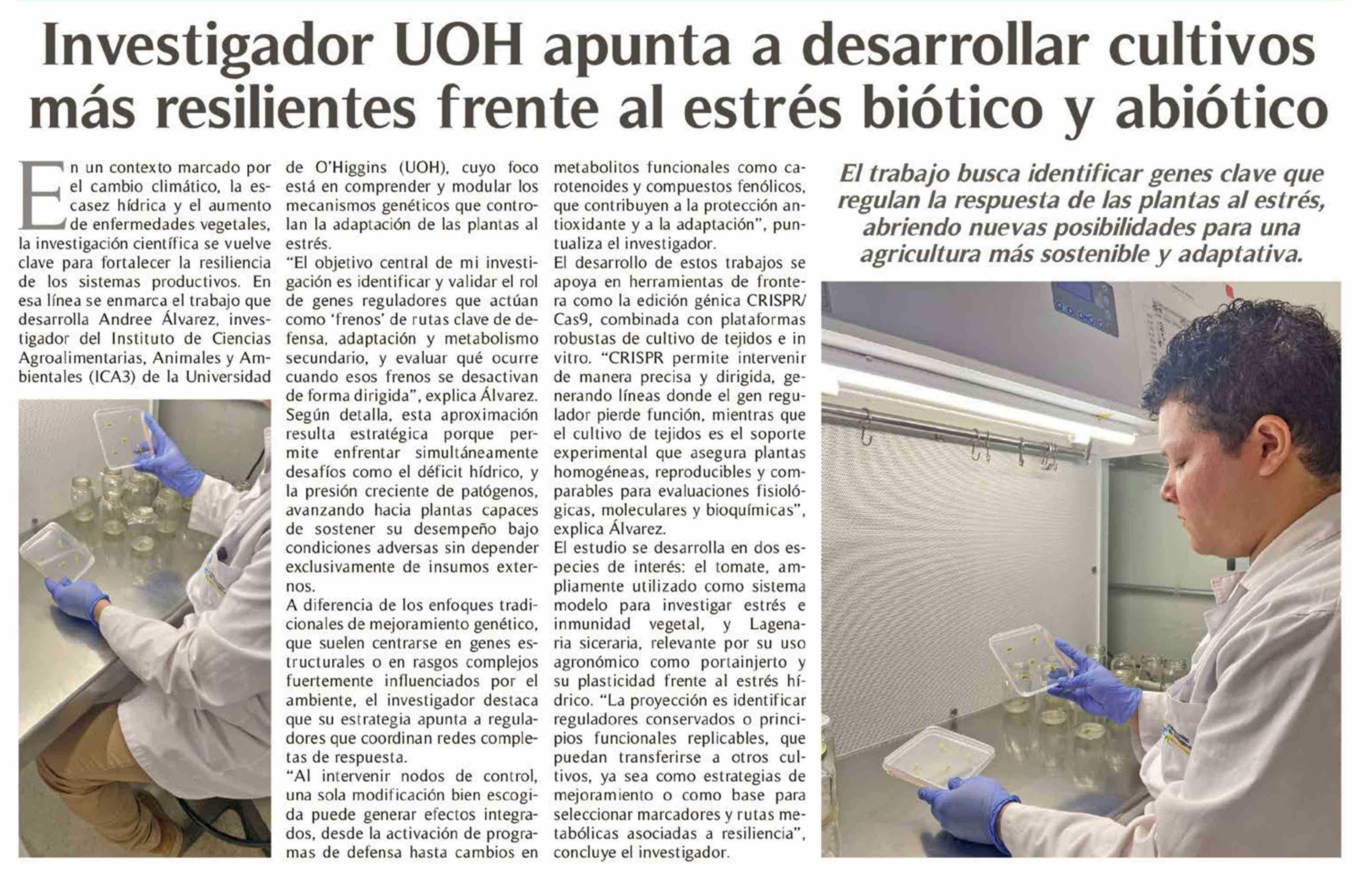 Investigador UOH apunta a desarrollar cultivos más resilientes frente al estrés biótico y abiótico