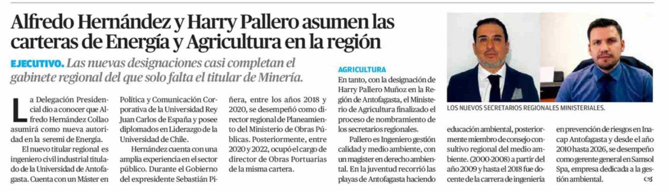 Alfredo Hernández y Harry Pallero asumen las carteras de Energía y Agricultura en la región