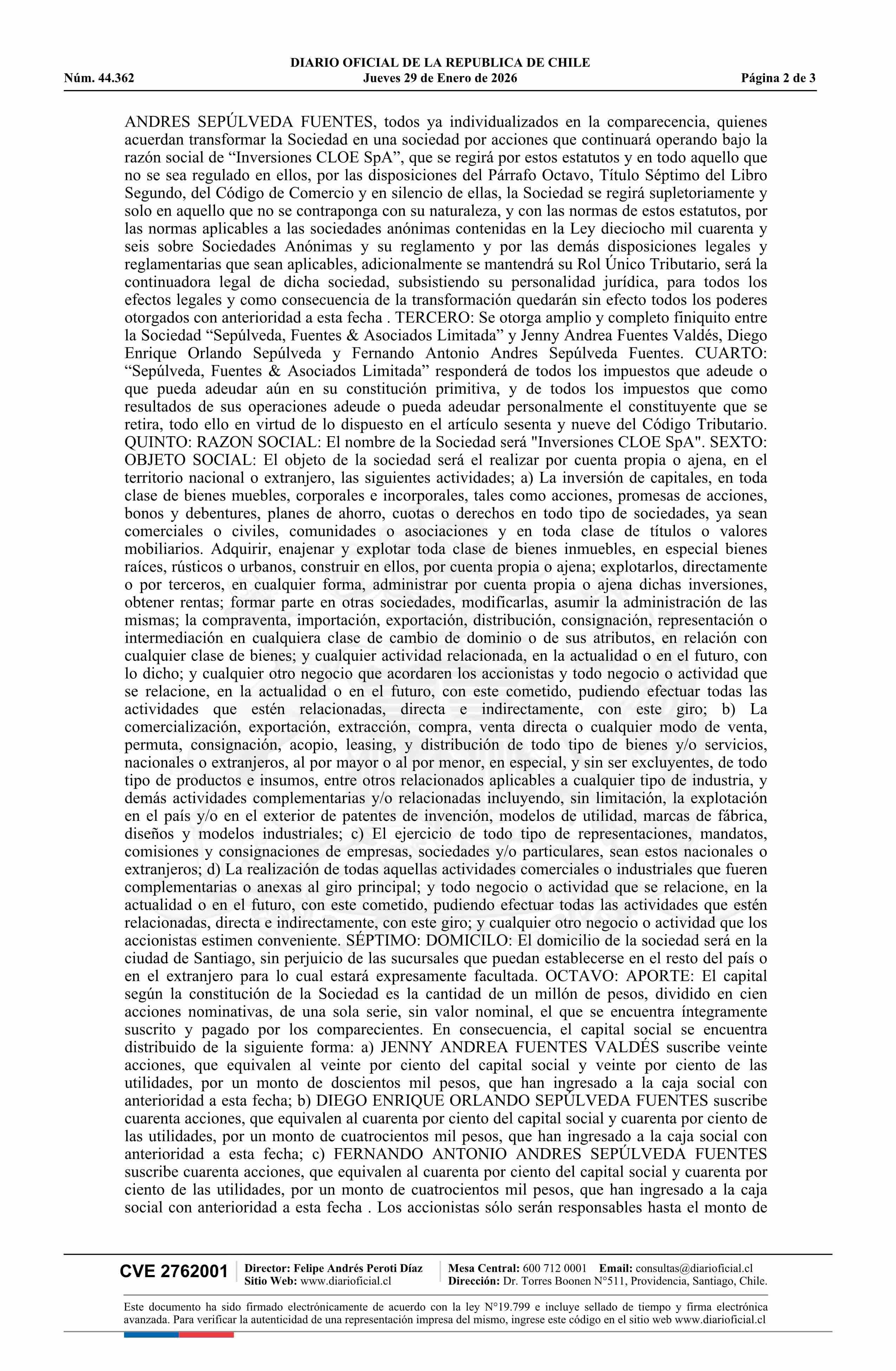 Inversiones CLOE SpA 76.842.332-6*