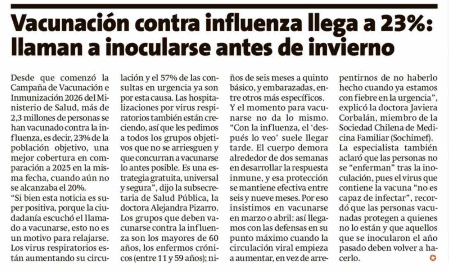 Vacunación contra influenza llega a 23%: llaman a inocularse antes de invierno
