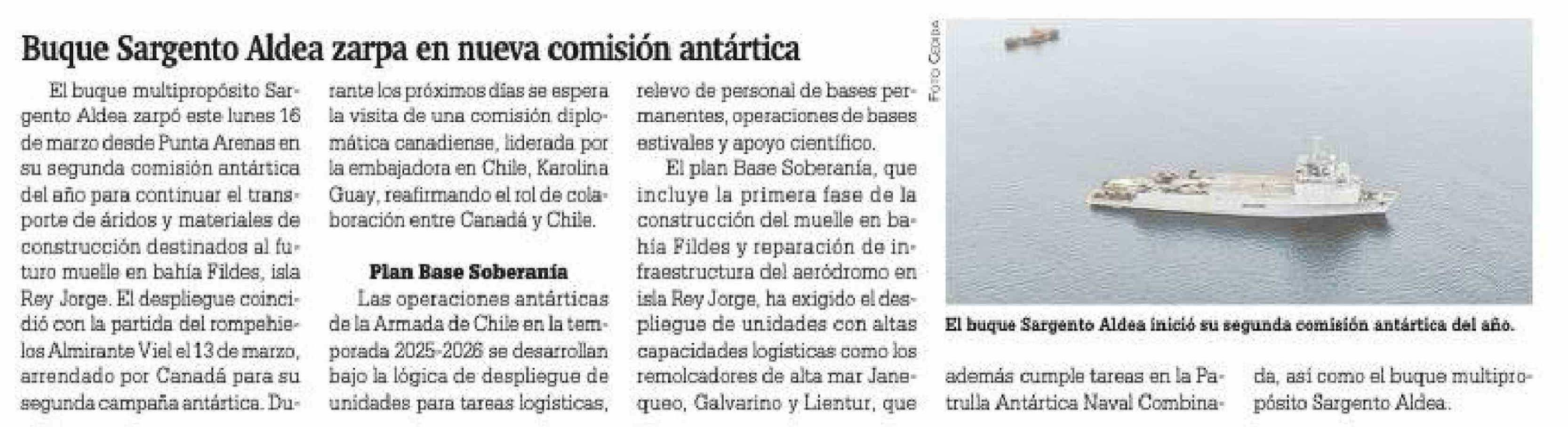 Buque Sargento Aldea zarpa en nueva comisión antártica