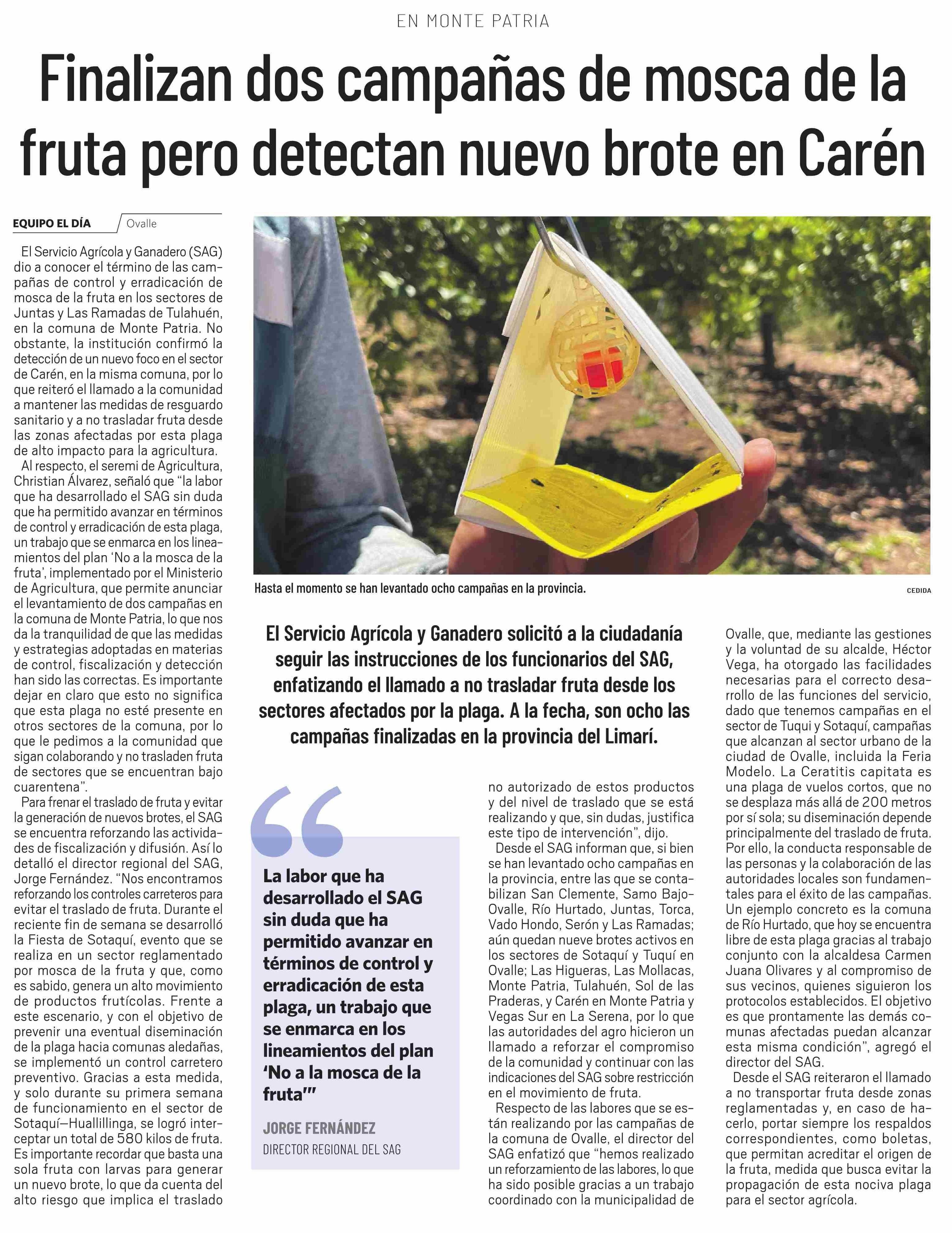 Finalizan dos campañas de mosca de la fruta pero detectan nuevo brote en Carén