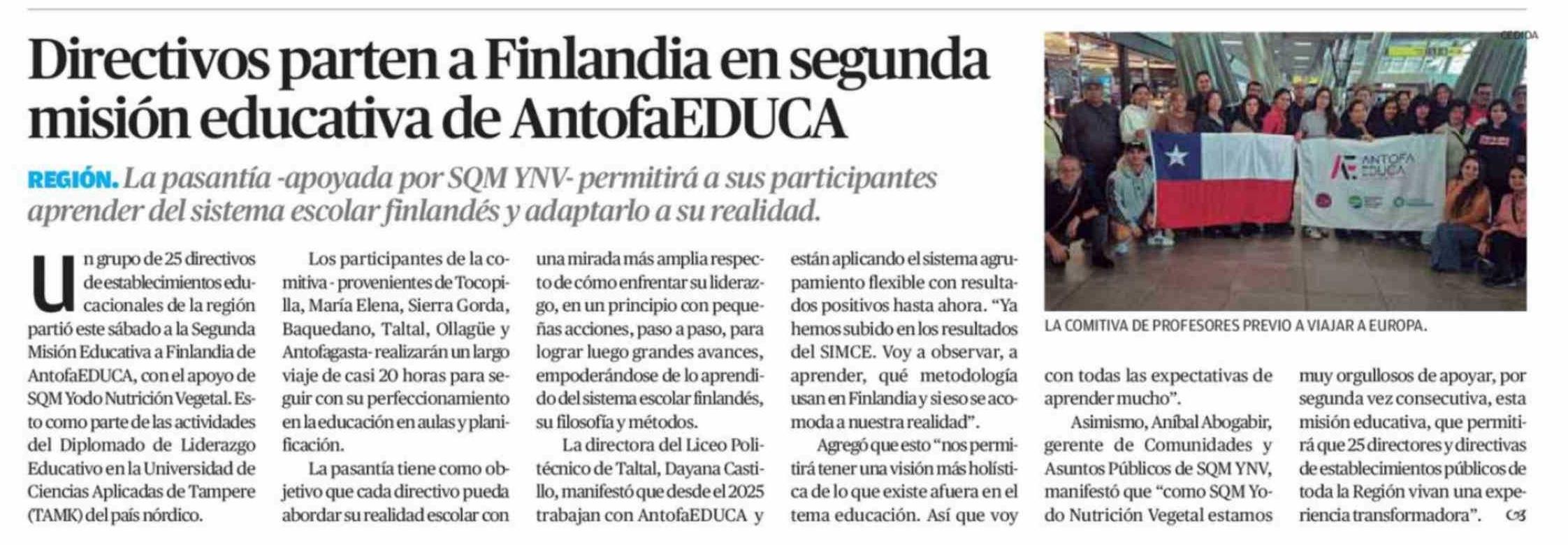 Directivos parten a Finlandia en segunda misión educativa de AntofaEDUCA